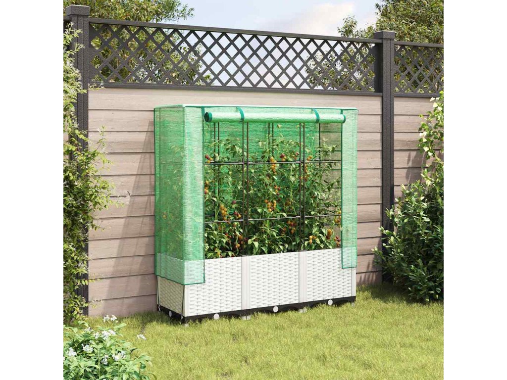 - Robustní konstrukce: Vyvýšený záhon vyrobený z polypropylenu má v horní části robustní rám ze železných trubek, který umožňuje rostlinám růst a popínat se po něm.