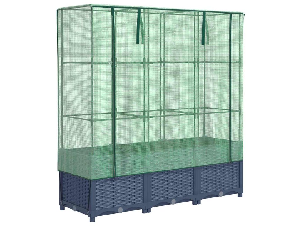 - Funkční kryt: Vyvýšený záhon je vybaven voděodolným polyethylenovým krytem, který chrání rostliny před extrémními teplotami a zároveň je chrání před hmyzem, ptáky a drobnými živočichy.