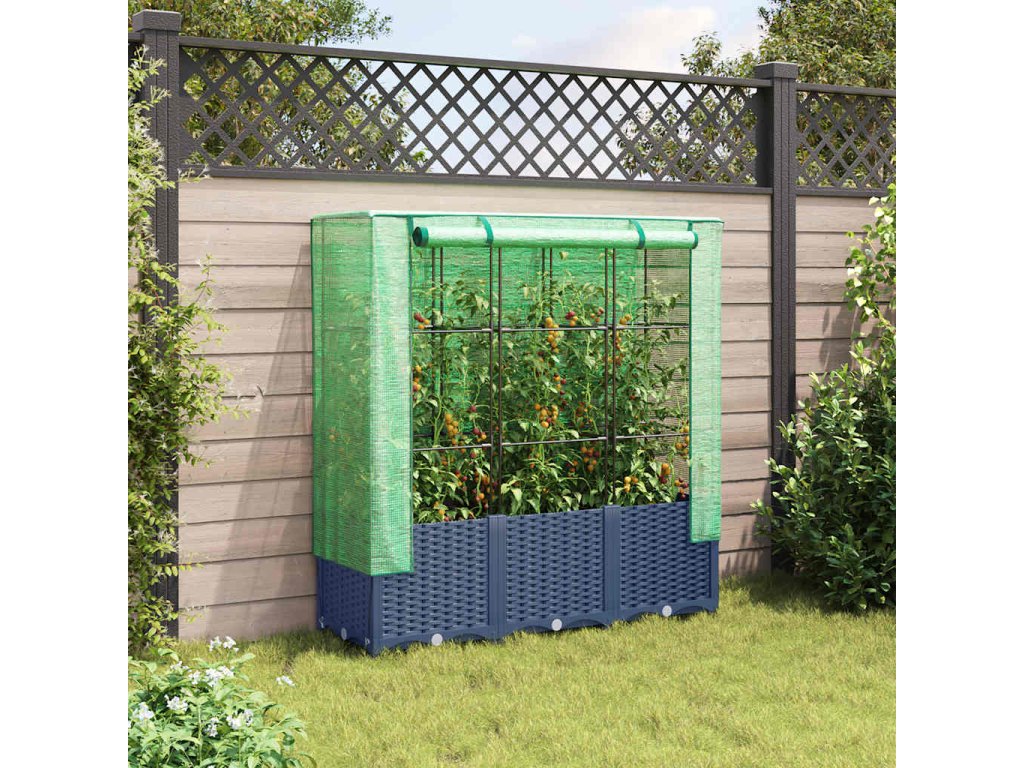 - Robustní konstrukce: Vyvýšený záhon vyrobený z polypropylenu má v horní části robustní rám ze železných trubek, který umožňuje rostlinám růst a popínat se po něm.