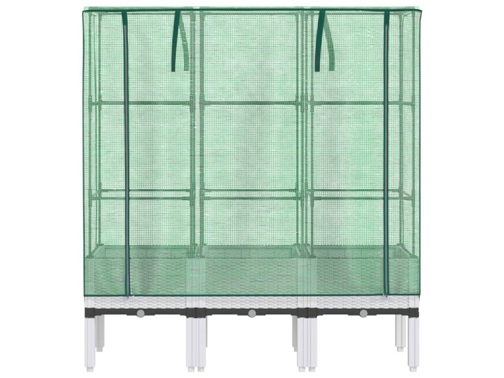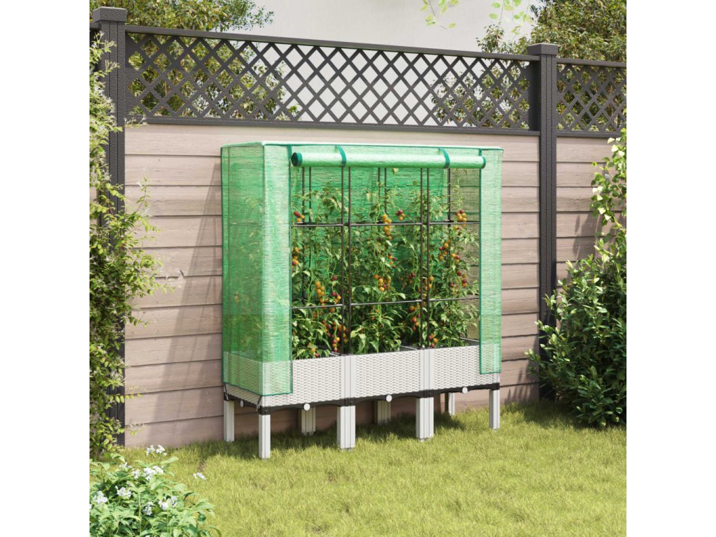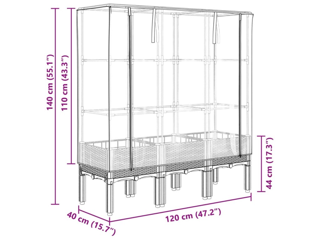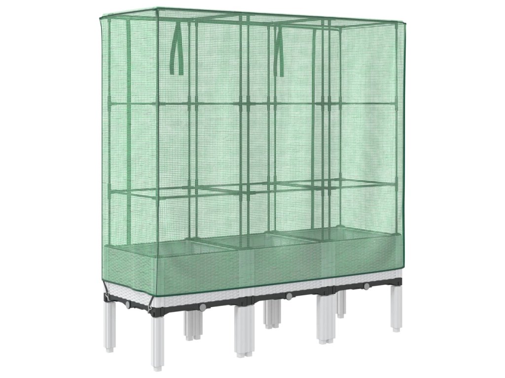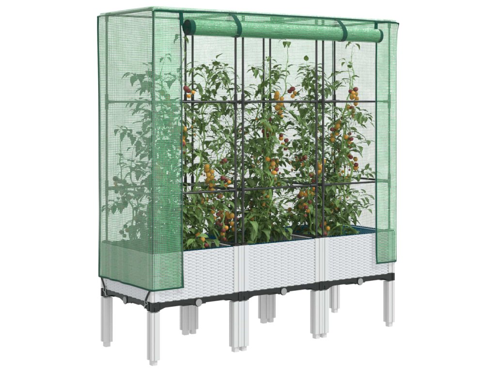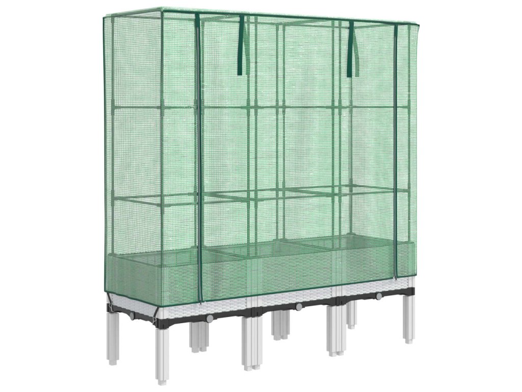 - Funkční kryt: Vyvýšený záhon je vybaven voděodolným polyethylenovým krytem, který chrání rostliny před extrémními teplotami a zároveň je chrání před hmyzem, ptáky a drobnými živočichy.