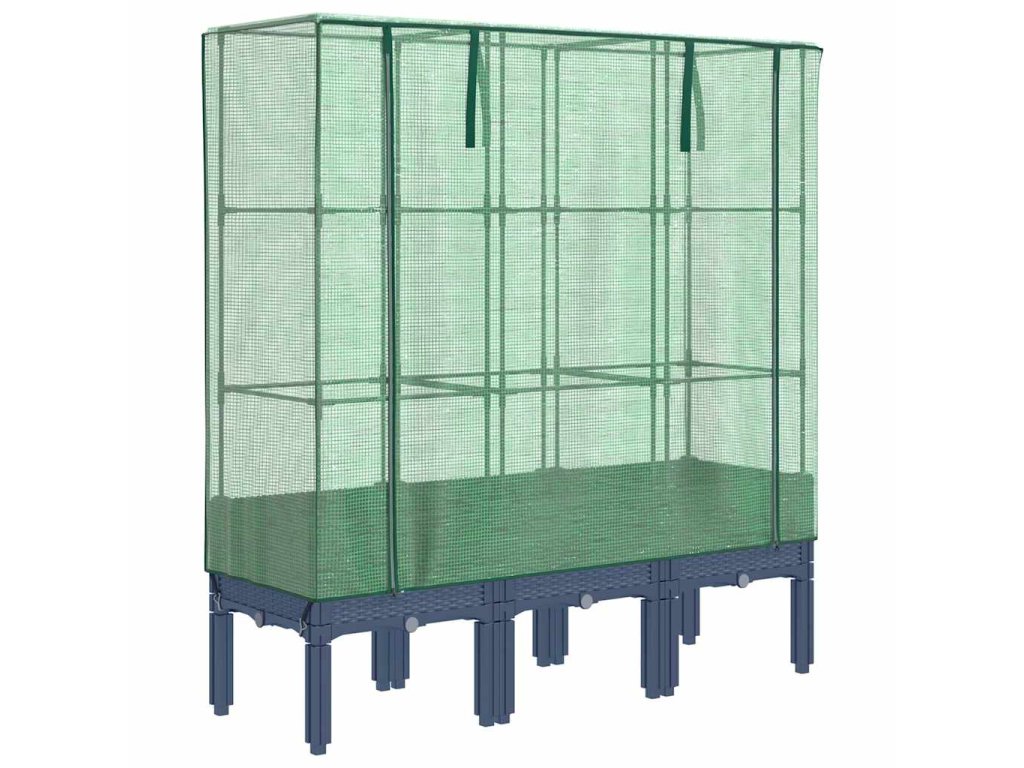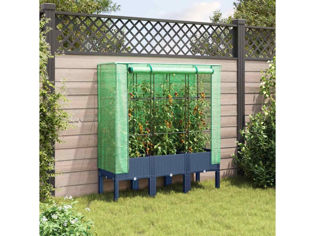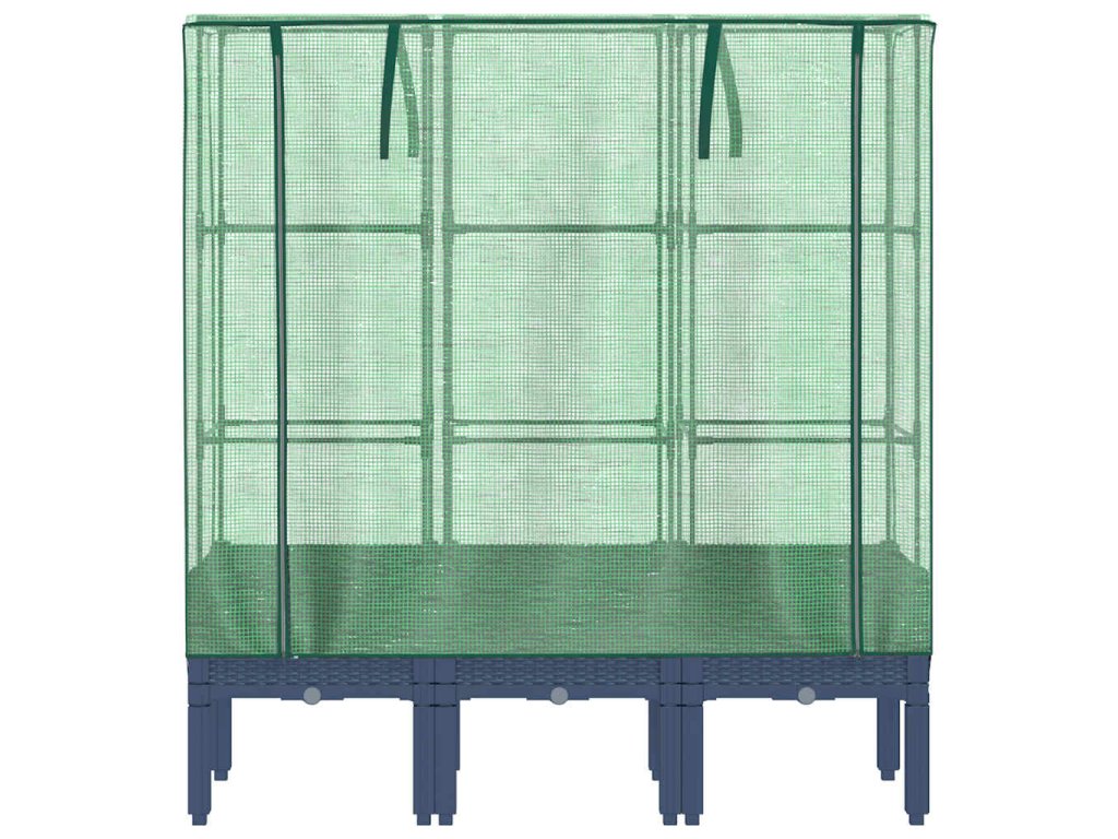 - Funkční kryt: Vyvýšený záhon je vybaven voděodolným polyethylenovým krytem, který chrání rostliny před extrémními teplotami a zároveň je chrání před hmyzem, ptáky a drobnými živočichy.