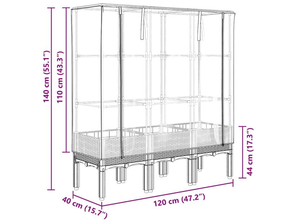 - Rozměry skleníku: 120 x 40 x 110 cm (D x Š x V)