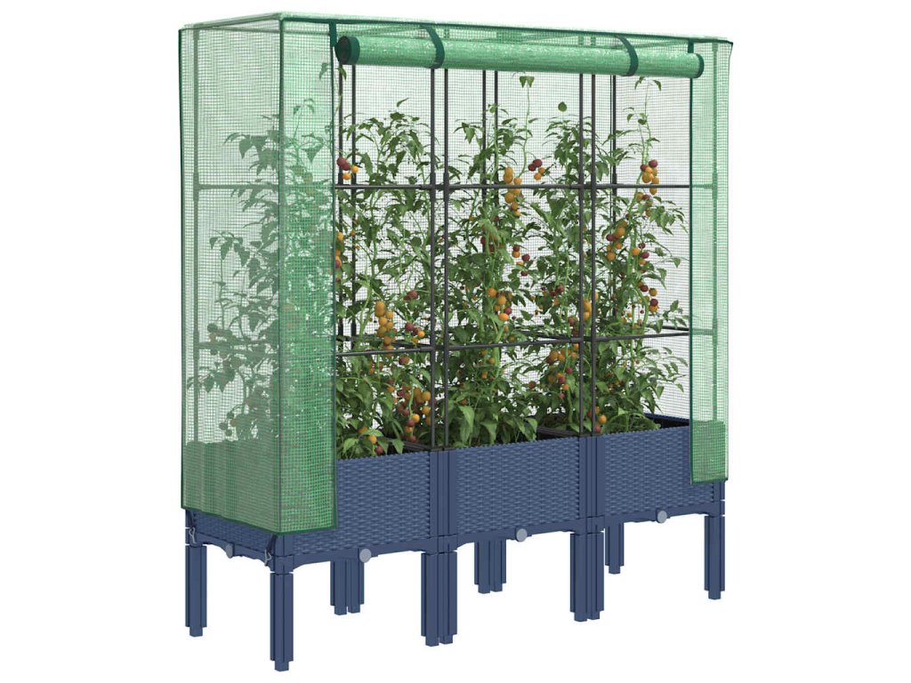 - Robustní konstrukce: Vyvýšený záhon vyrobený z polypropylenu má v horní části robustní rám ze železných trubek, který umožňuje rostlinám růst a popínat se po něm.