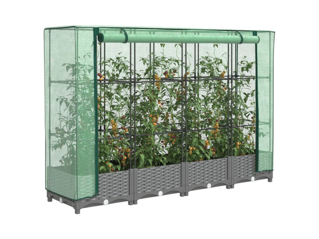 - Funkční kryt: Vyvýšený záhon je vybaven voděodolným polyethylenovým krytem, který chrání rostliny před extrémními teplotami a zároveň je chrání před hmyzem, ptáky a drobnými živočichy.