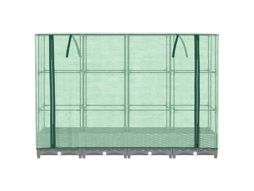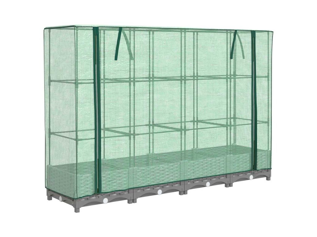 - Funkční kryt: Vyvýšený záhon je vybaven voděodolným polyethylenovým krytem, který chrání rostliny před extrémními teplotami a zároveň je chrání před hmyzem, ptáky a drobnými živočichy.