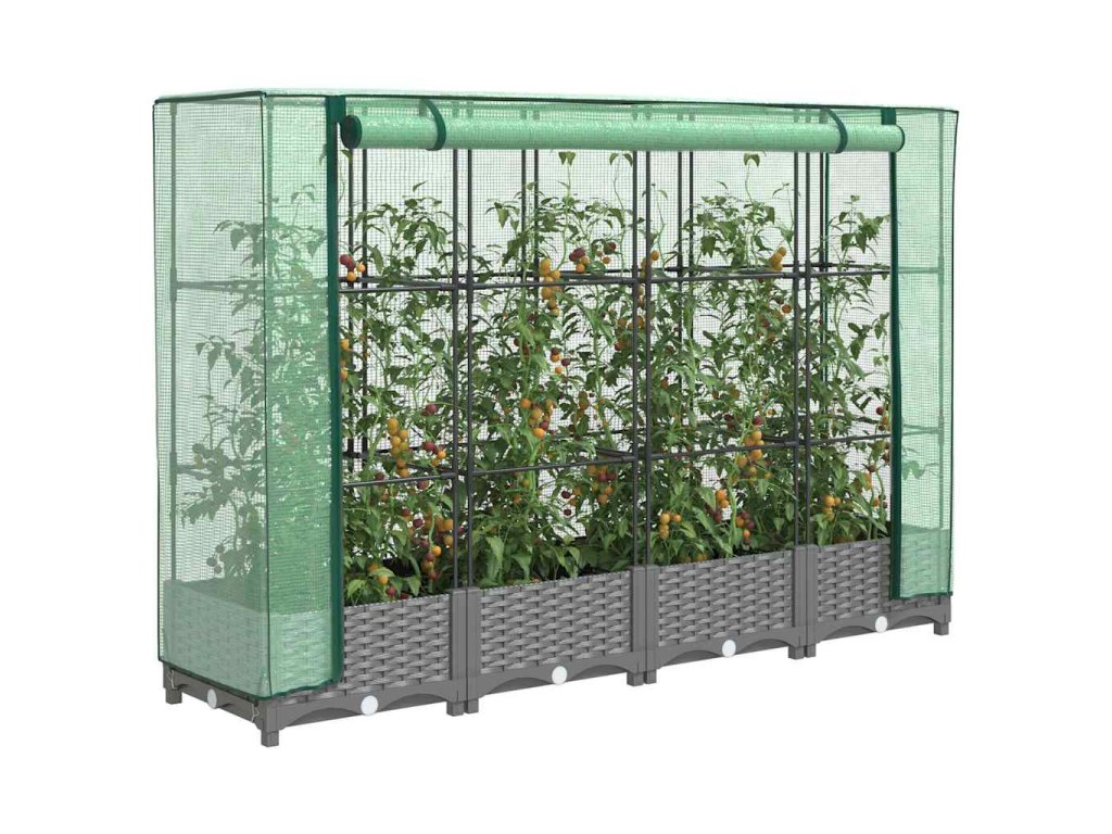 - Robustní konstrukce: Vyvýšený záhon vyrobený z polypropylenu má v horní části robustní rám ze železných trubek, který umožňuje rostlinám růst a popínat se po něm.