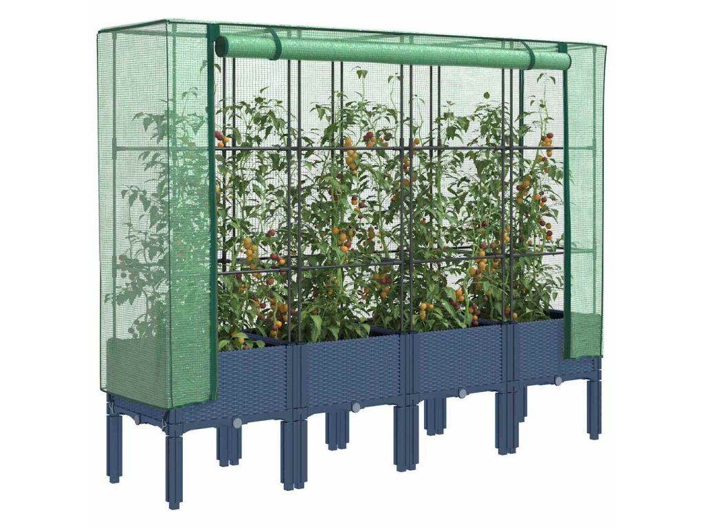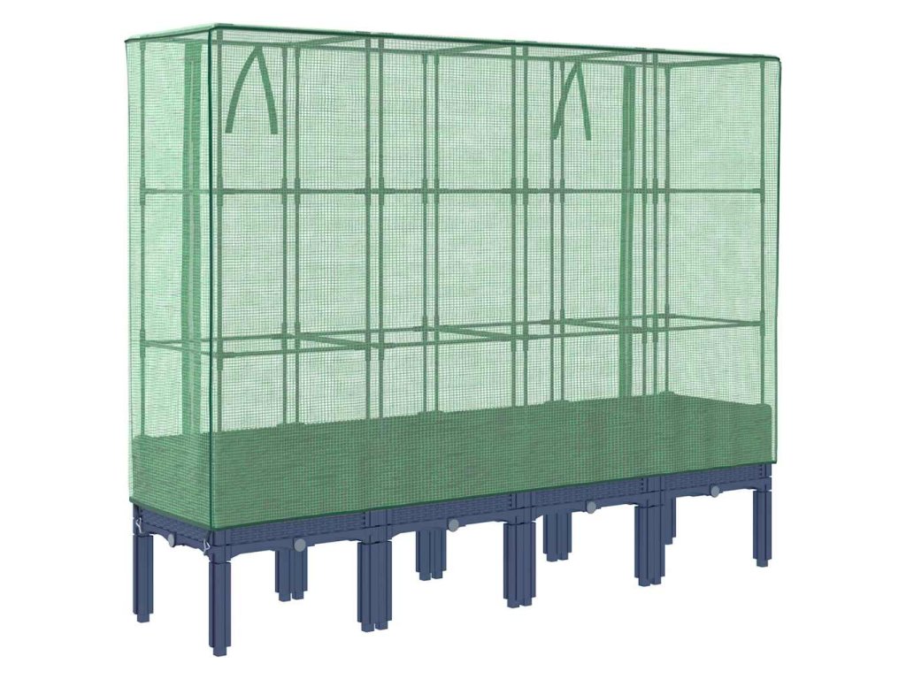 - Funkční kryt: Vyvýšený záhon je vybaven voděodolným polyethylenovým krytem, který chrání rostliny před extrémními teplotami a zároveň je chrání před hmyzem, ptáky a drobnými živočichy.