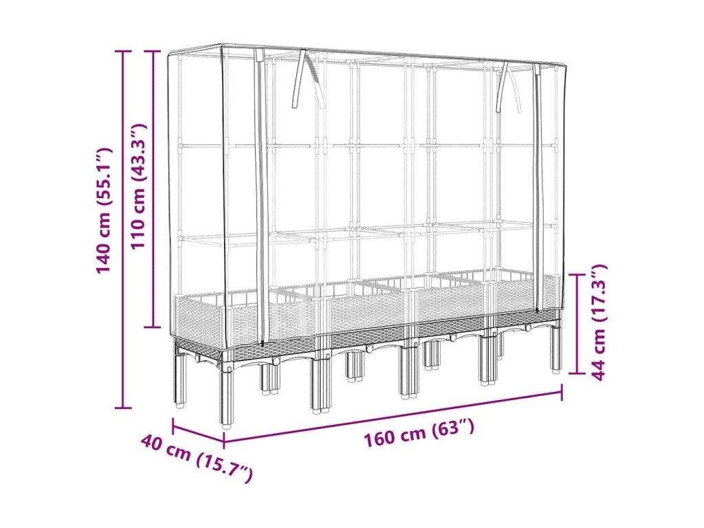 - Rozměry skleníku: 160 x 40 x 110 cm (D x Š x V)