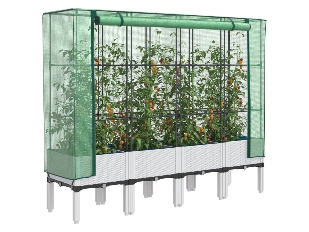 - Funkční kryt: Vyvýšený záhon je vybaven voděodolným polyethylenovým krytem, který chrání rostliny před extrémními teplotami a zároveň je chrání před hmyzem, ptáky a drobnými živočichy.