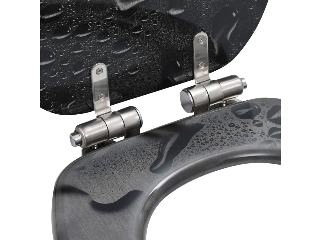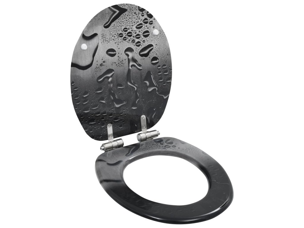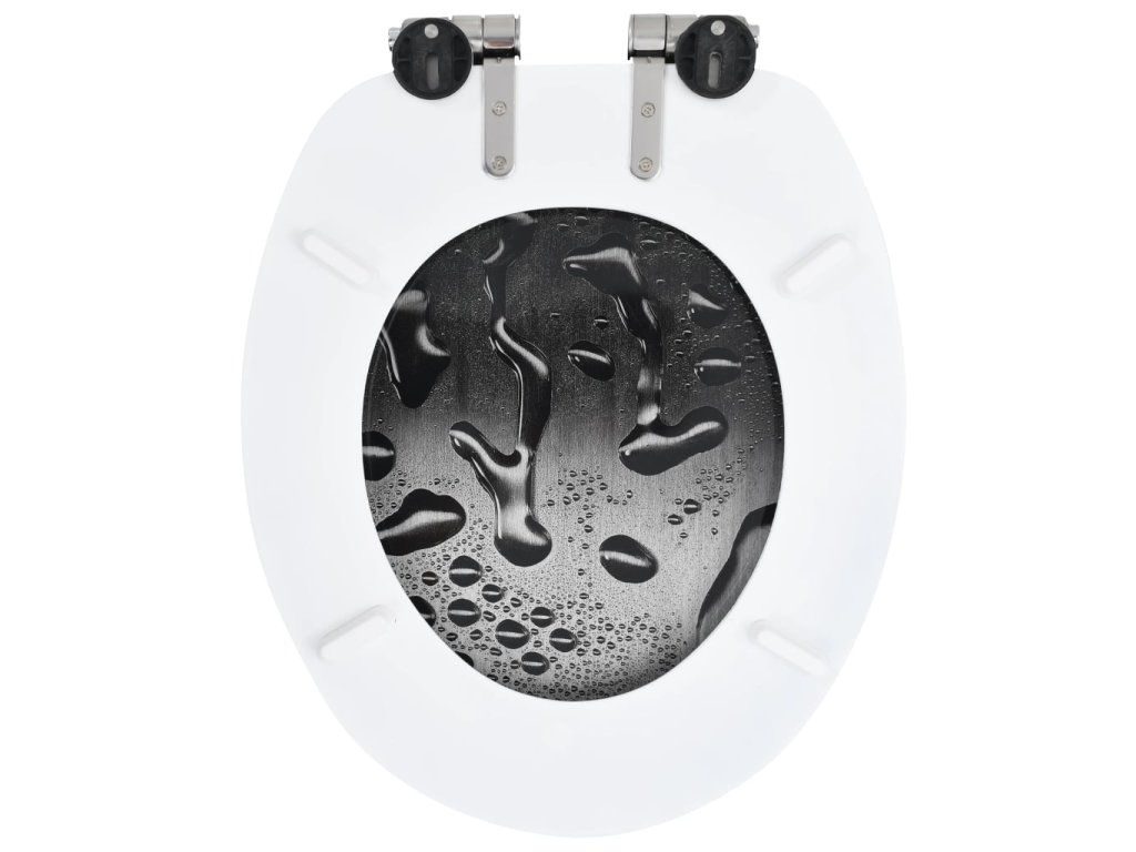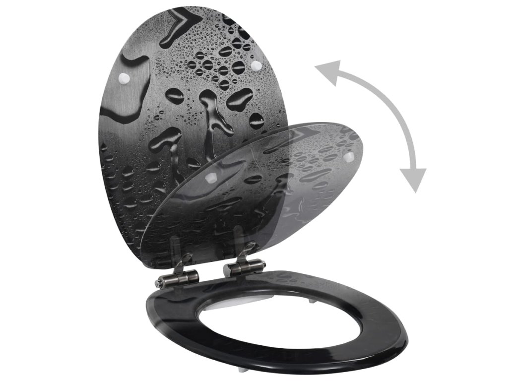 Víko a sedátko jsou zhotovena z MDF desky, takže jsou pevná a odolná. Panty jsou vyrobené z extrémně silné slitiny chromu a zinku. Toaletní prkénko disponuje funkcí pomalého sklápění, víko se tedy zavírá a otevírá pomalu a tiše, aby nedělalo přílišný hluk a vydrželo vám sloužit dlouhé roky.