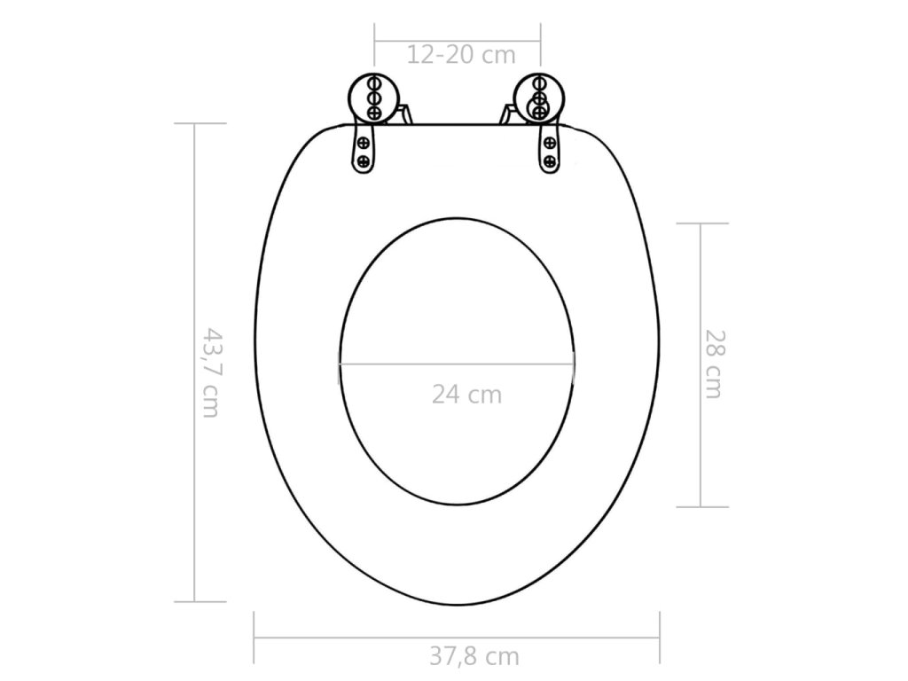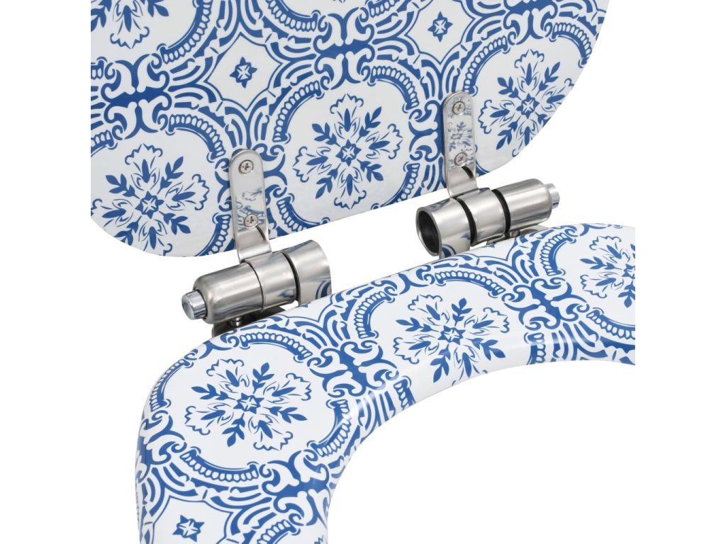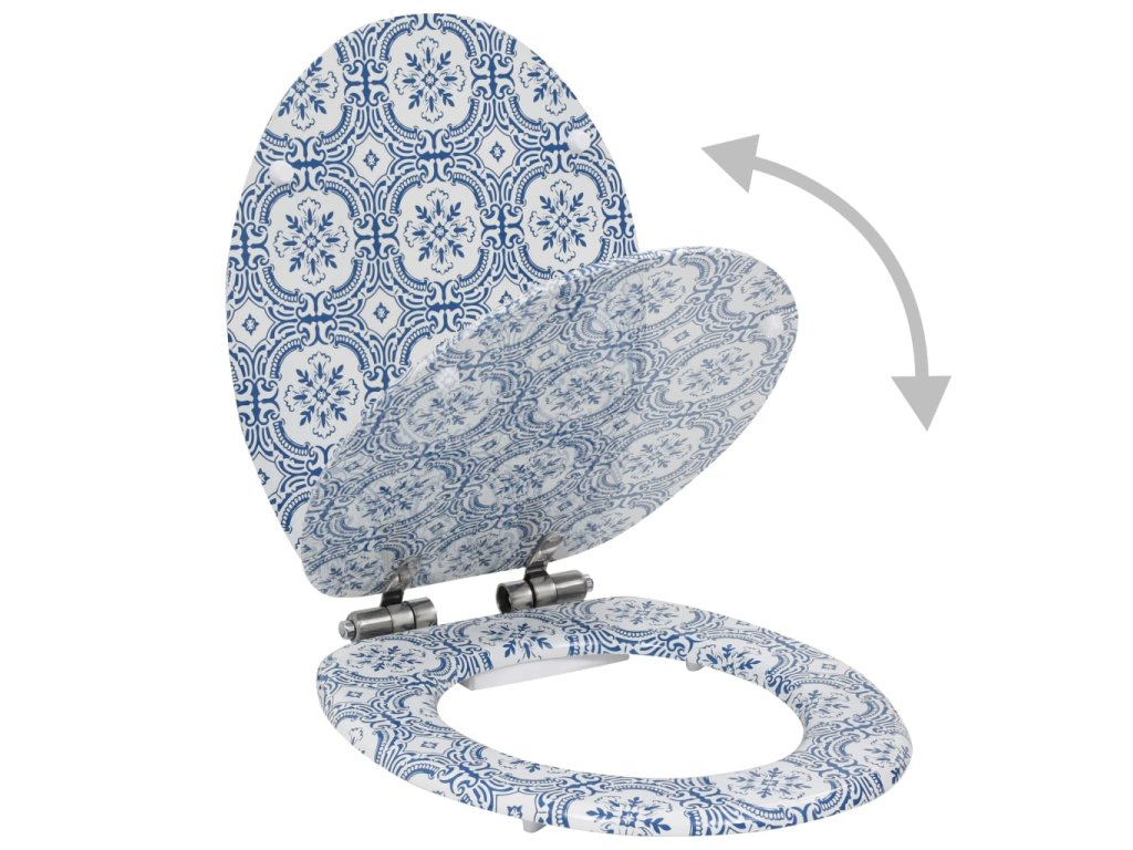 Víko a sedátko jsou zhotovena z MDF desky, takže jsou pevná a odolná. Panty jsou vyrobené z extrémně silné slitiny chromu a zinku. Toaletní prkénko disponuje funkcí pomalého sklápění, víko se tedy zavírá a otevírá pomalu a tiše, aby nedělalo přílišný hluk a vydrželo vám sloužit dlouhé roky.