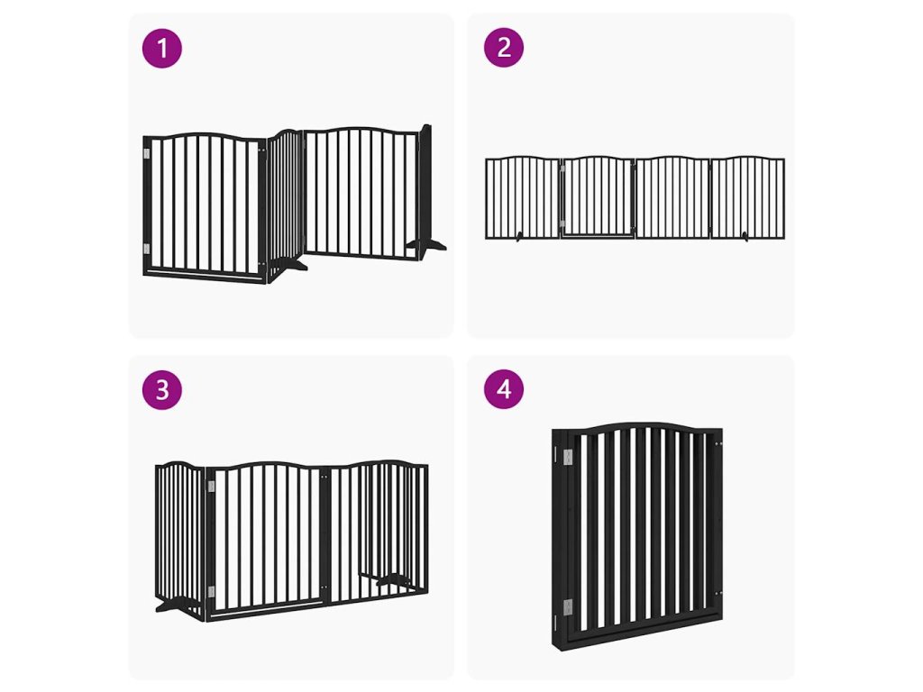 - Snadné použití: Zábrana pro psy nevyžaduje žádnou montáž ani vrtání, které by poškodilo váš domov. Když je branka bez nožiček, dá se plně složit, takže se snadno přenáší a skladuje ve skříni nebo kdekoli jinde.