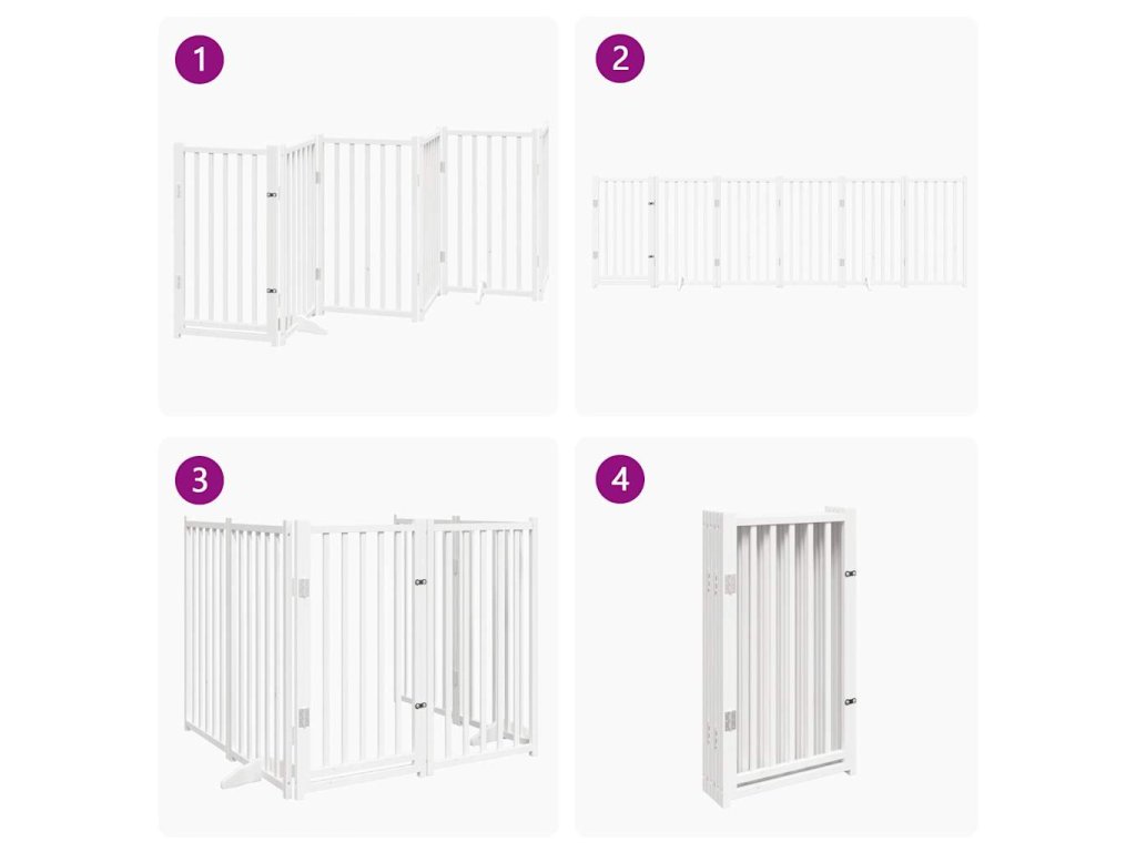 - Snadné použití: Zábrana pro psy nevyžaduje žádnou montáž ani vrtání, které by poškodilo váš domov. Když je branka bez nožiček, dá se plně složit, takže se snadno přenáší a skladuje ve skříni nebo kdekoli jinde.