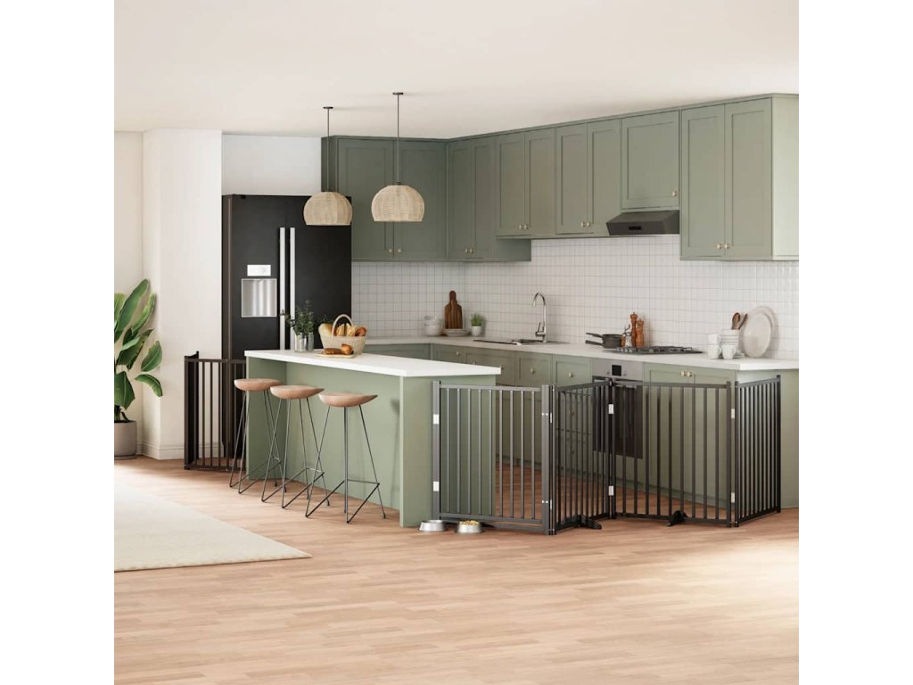 - Praktický design: Psí zábrana je vybavena dvěma pevnými nožičkami, které zajišťují stabilitu a umožňují snadné nastavení. Kromě toho obsahuje dveřní panel a je vybavena zámky, takže poskytuje větší bezpečnost i praktičnost pro vás i vaše mazlíčky.