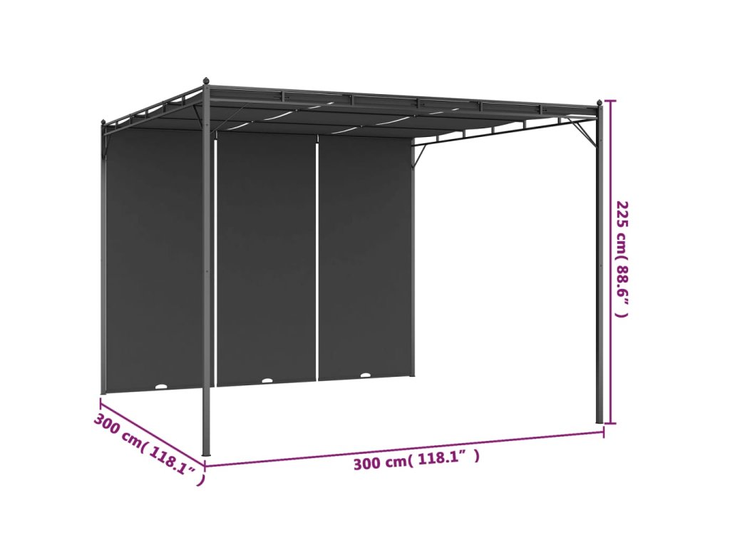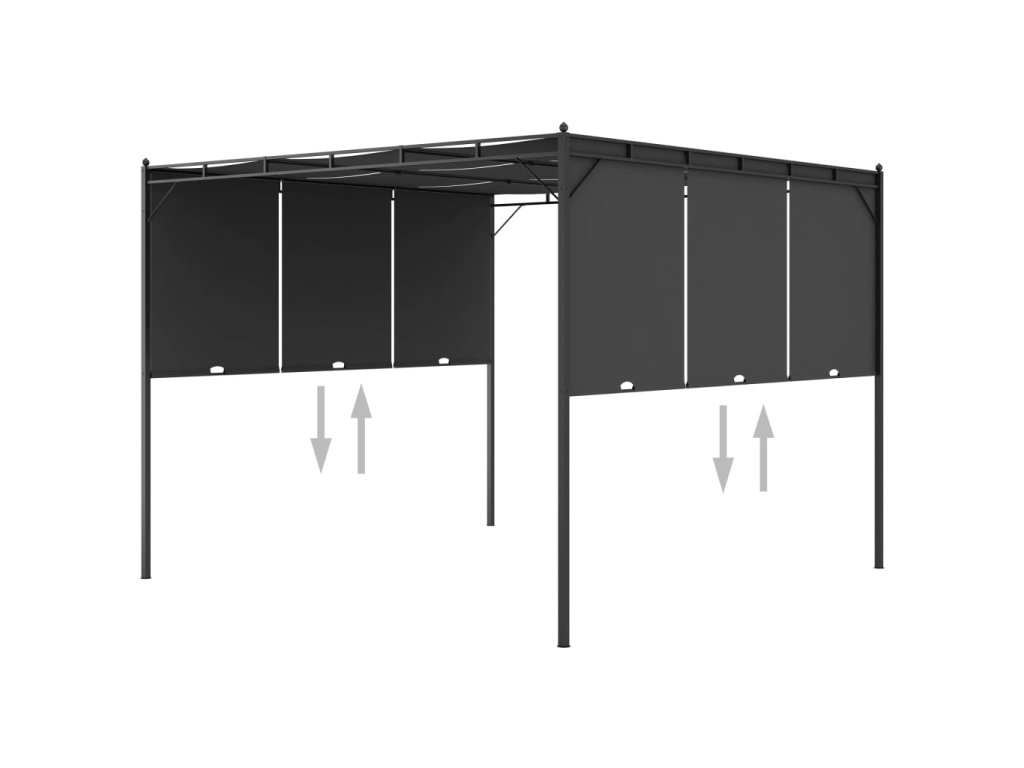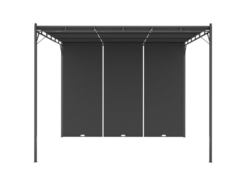 Má rám z práškově lakované oceli, která tvoří robustní a odolnou konstrukci. Látková stříška a boční závěs vás ochrání před spalujícím sluníčkem, abyste si mohli pohodlněji užít svou venkovní zábavu. Úhledný a praktický přístřešek snadno sestavíte.