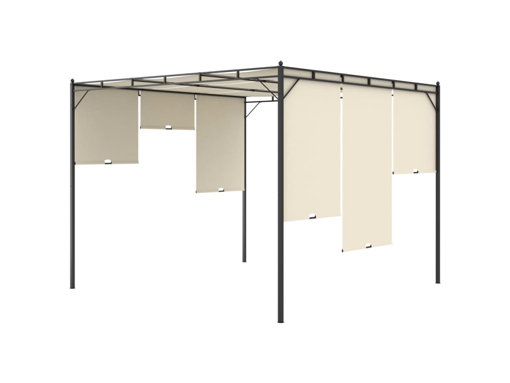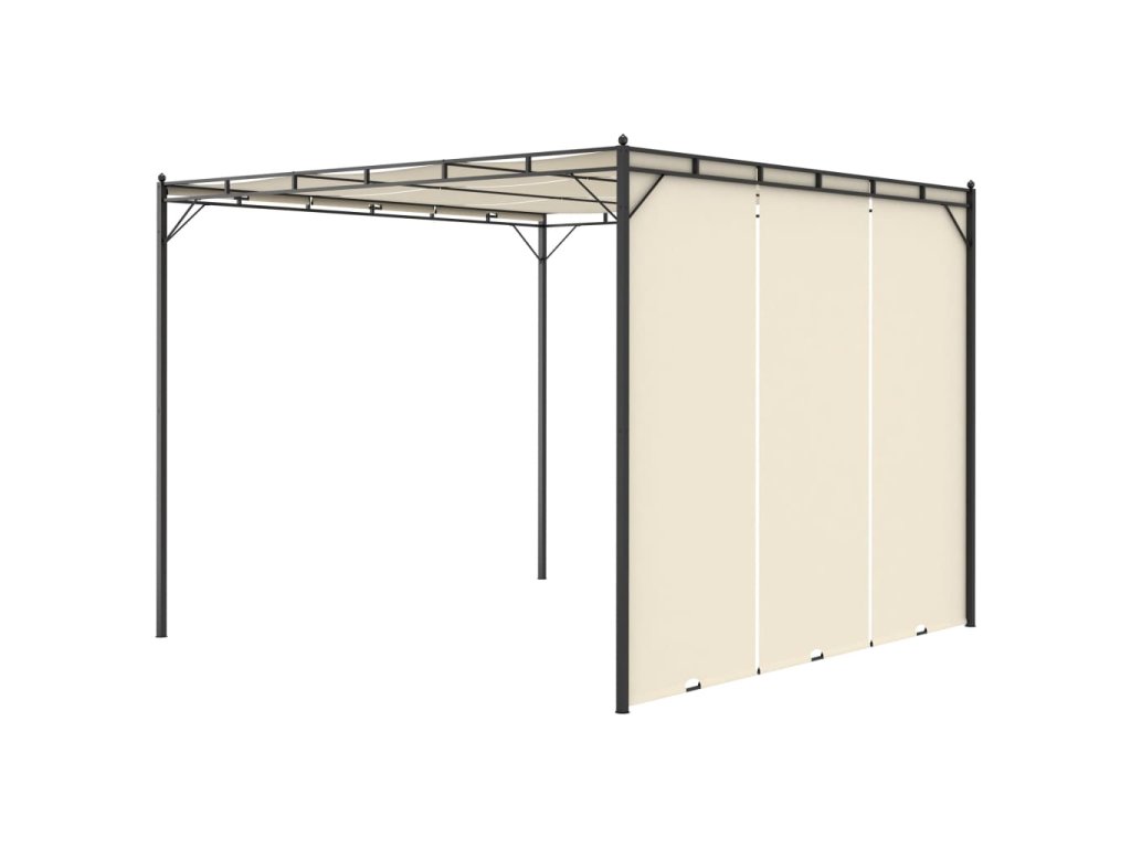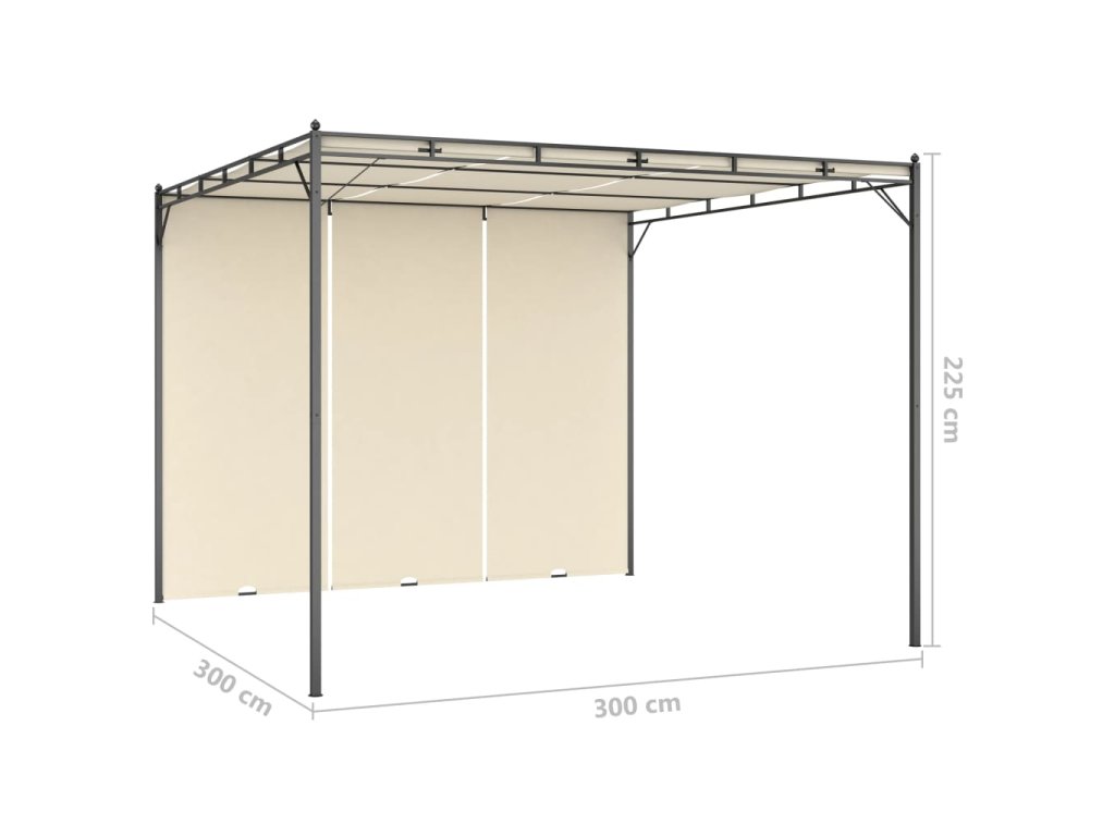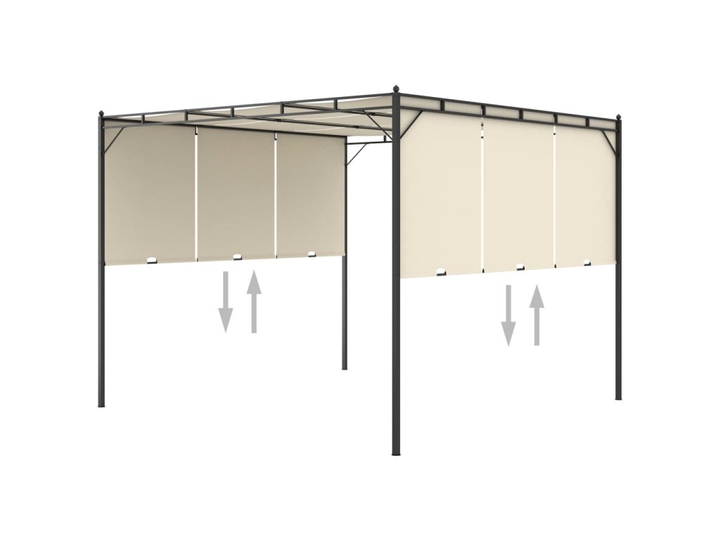 Má rám z práškově lakované oceli, která tvoří robustní a odolnou konstrukci. Látková stříška a boční závěs vás ochrání před spalujícím sluníčkem, abyste si mohli pohodlněji užít svou venkovní zábavu. Úhledný a praktický přístřešek snadno sestavíte.