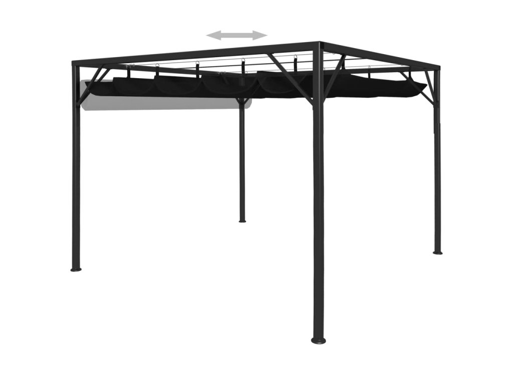 Užívejte si spolu s vaší rodinou různé společenské události a buďte chráněni před rozmary počasí pod tímto altánem. Tento altán je vhodný pro všechny typy počasí; jeho zatahovací střecha vás chrání před škodlivým UV zářením a také před deštěm. Tento altán je vyroben z kovového rámu s práškovým nástřikem a 100% voděodolné polyesterové střechy.