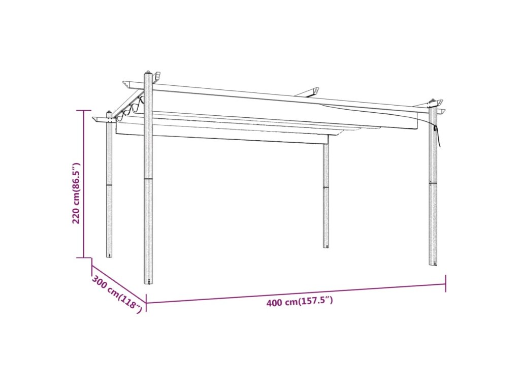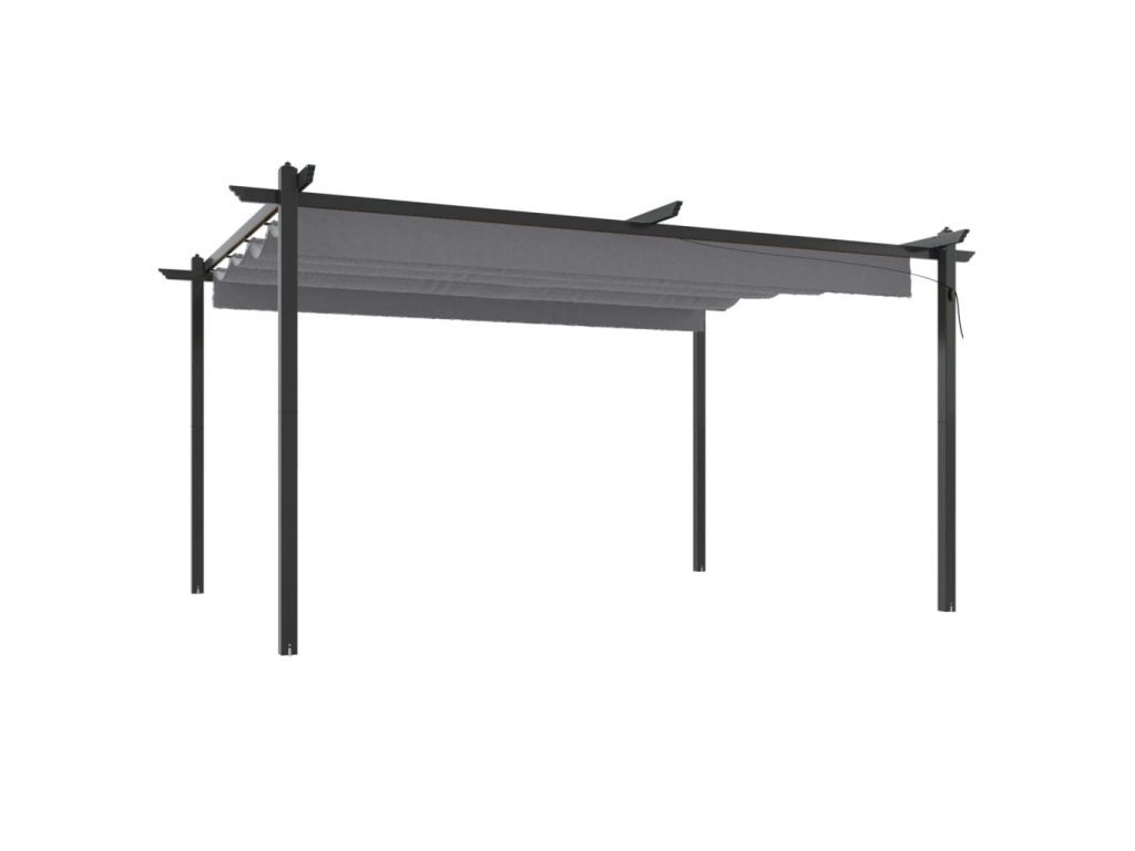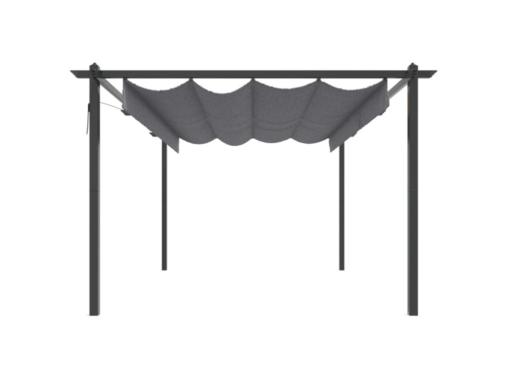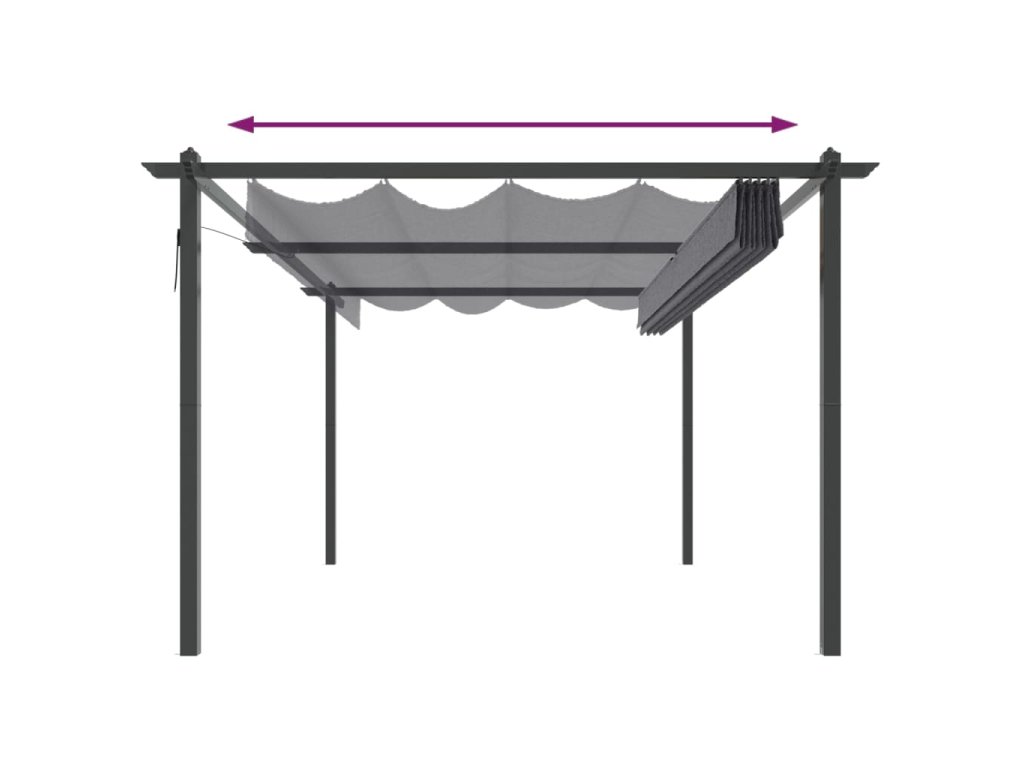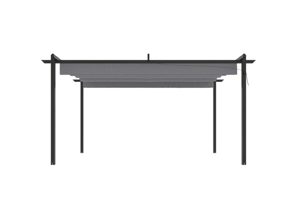 Tento venkovní altán má ocelový rám s práškovým nástřikem, takže je robustní a stabilní. Altán je vybaven zatahovací střechou s PA povlakem, která je odolná vůči UV záření a vodě. Střechu můžete snadno otočit a nastavit do ideální polohy pomocí ruční tyče. Otevřete ji, když si chcete užít slunce, a zavřete, abyste získali stín nebo úkryt. Tento altán je ideálním společníkem pro vaše venkovní aktivity.