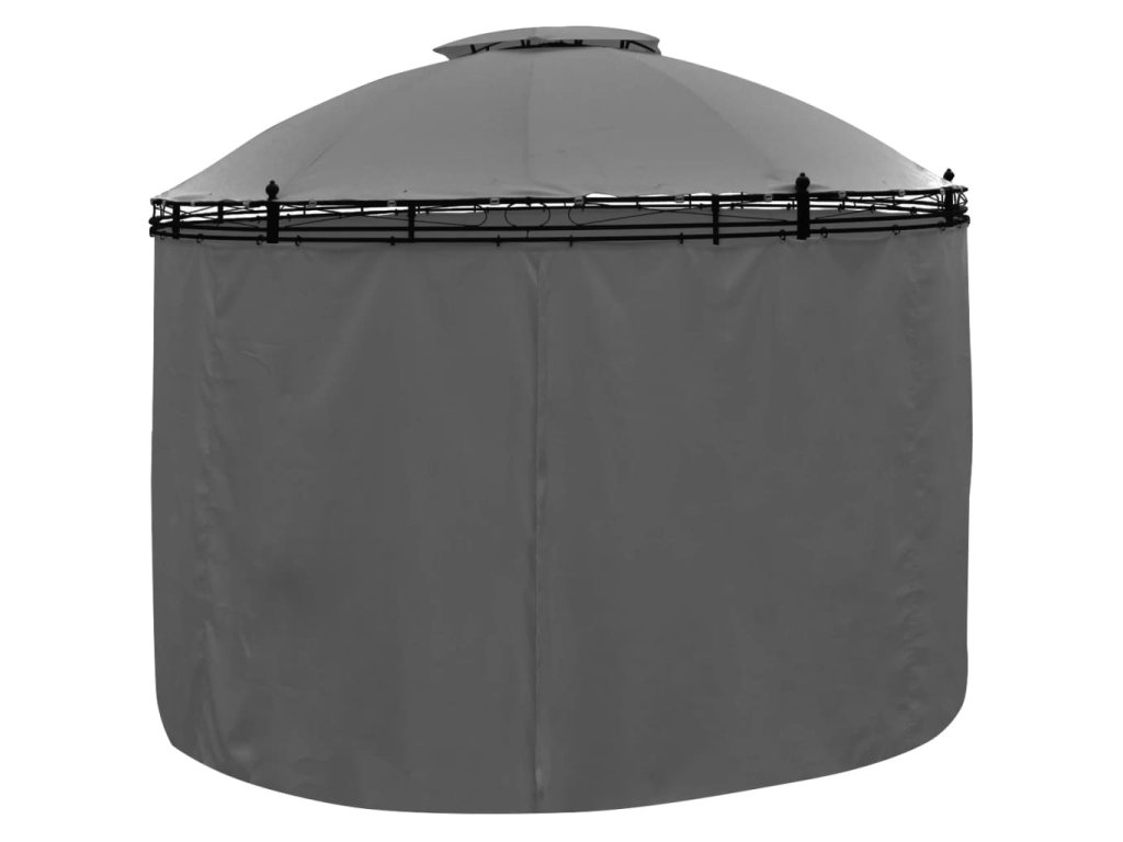 Tento zahradní stan je vyrobený z vysoce kvalitního polyesteru, který odpuzuje vodu a špínu a je odolný vůči UV záření. Díky svému pevnému ocelovému rámu s práškovým nástřikem je tento altán robustní a velmi odolný. Má dvojitou střechu s ventilačními otvory, které umožňují lepší proudění vzduchu. Snadno čistitelné polyesterové závěsy s vazačkami se dají zatáhnout pro zvýšené soukromí.