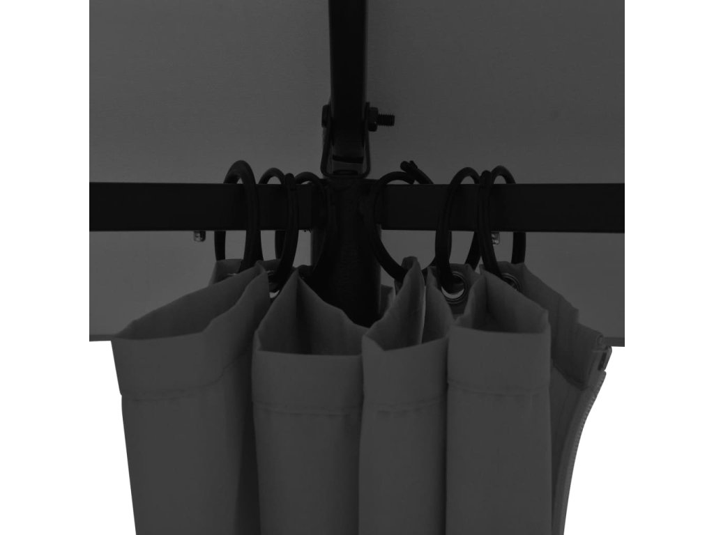 Střecha a závěsy altánu jsou vyrobené z polyesteru potaženého PA vrstvou, takže jsou nepromokavé. Bytelný rám je vyrobený z pevné oceli s práškovým nástřikem a altán je stabilní a nerezaví. Stylová stříška navíc zaujme svým dvoupatrovým provedením, které napomáhá proudění vzduchu. Polyesterové závěsy lze zatáhnout nebo je sepnout přiloženými stužkami a nechat je otevřené.