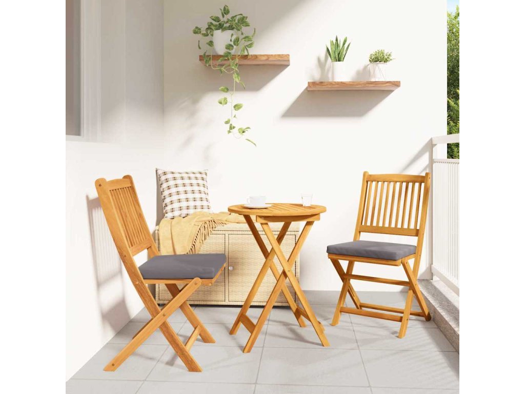- Odolná konstrukce: Vyrobeno z masivního akáciového dřeva, tento bistro set je navrženo, aby zvládl venkovní podmínky a zároveň vypadalo skvěle.