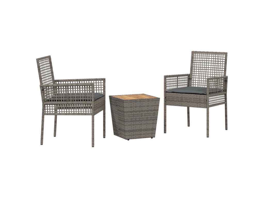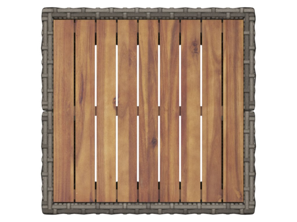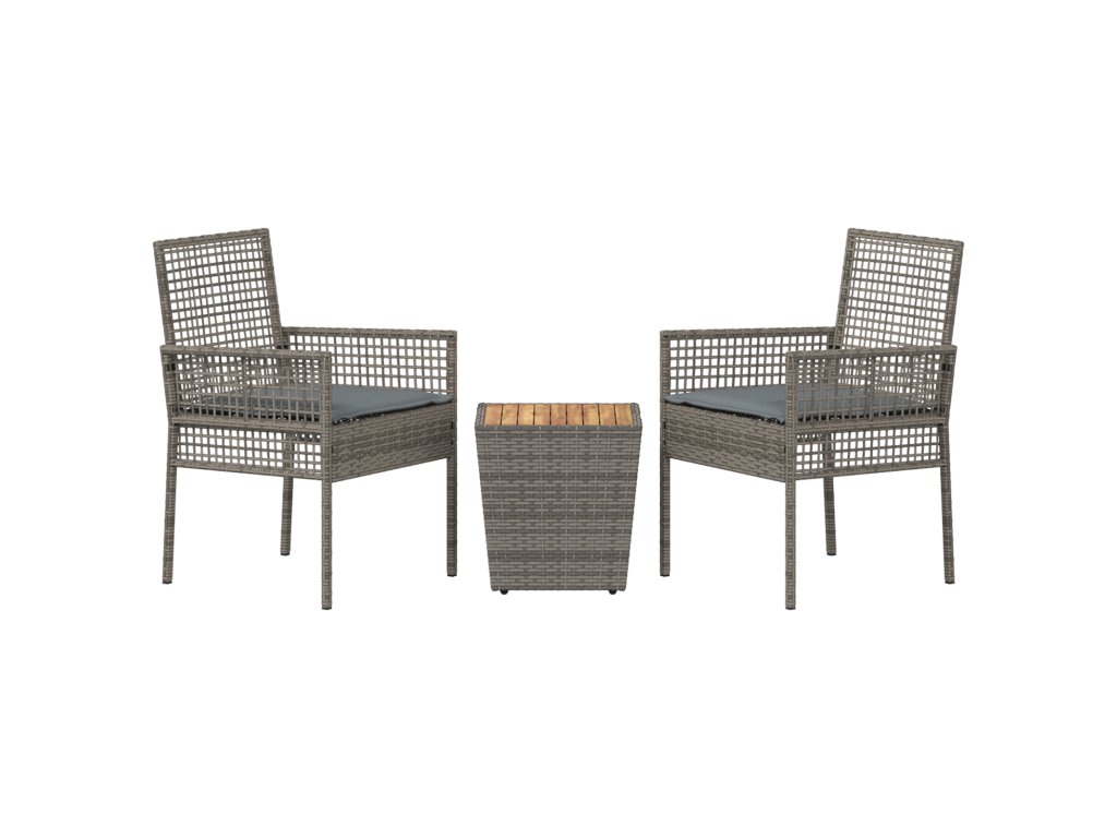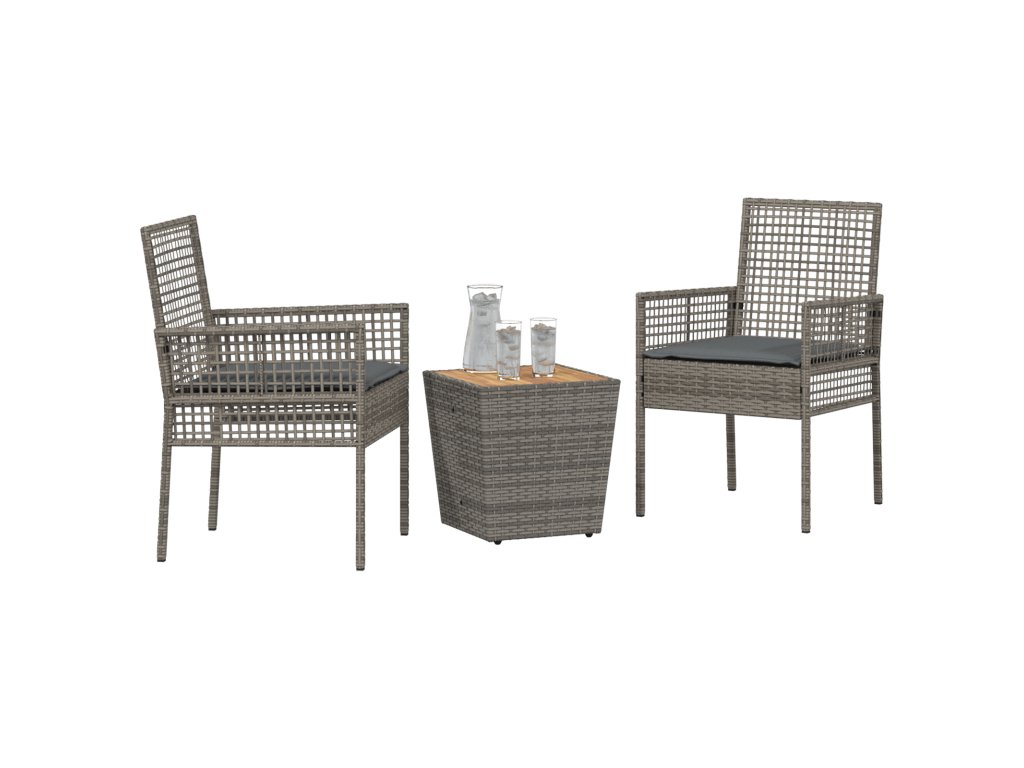 Tato kompaktní rustikální čajová souprava je skvělou kombinací kouzla a praktičnosti, ideální pro užívání nápojů a občerstvení venku. Je vyrobena z masivního akáciového dřeva a syntetického ratanu, což jí dává skvělý vzhled a odolnost v různých venkovních podmínkách.