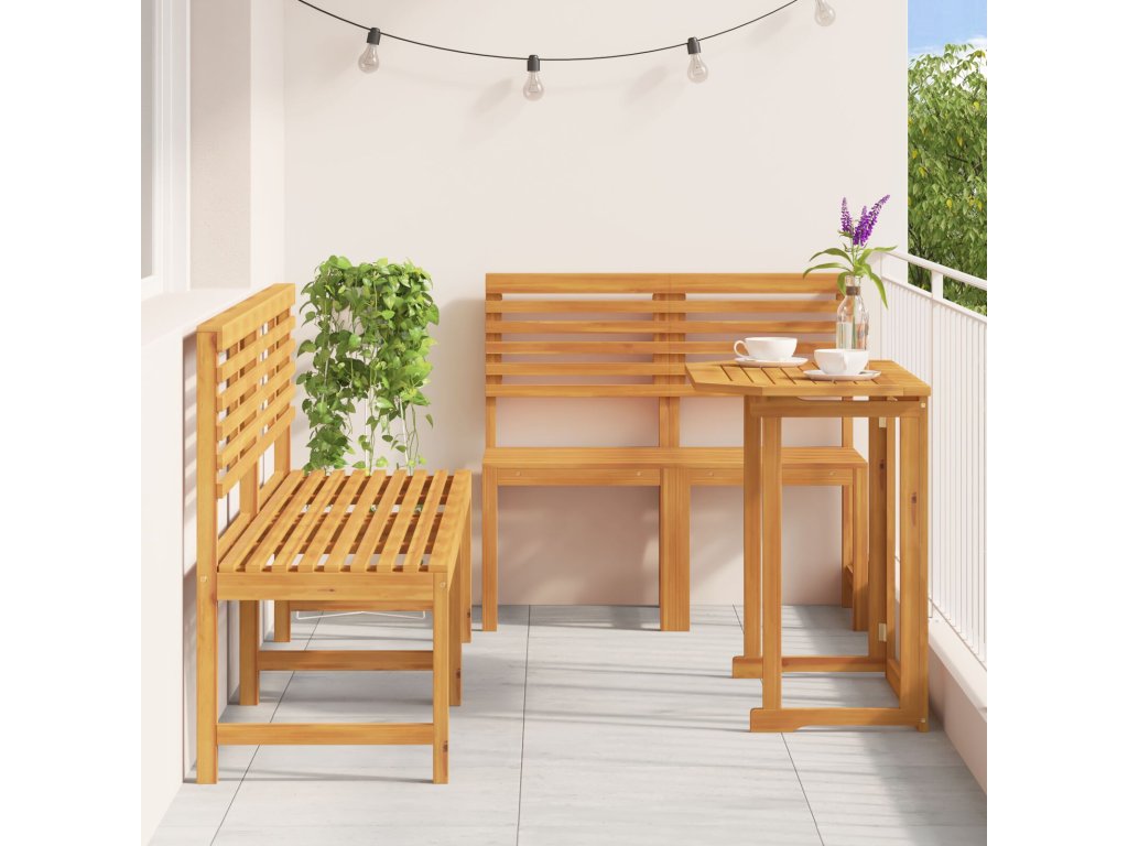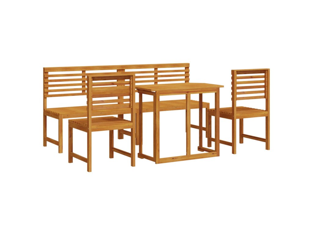 Tato rustikální venkovní jídelní sada spojuje kouzlo s praktičností, takže je ideální na vaše balkony nebo terasy. Těžký stůl z masivního akáciového dřeva dodává teplo a eleganci, perfektně pasuje k jakémukoli venkovnímu stylu a vytváří útulné místo pro intimní večeře nebo neformální posezení.