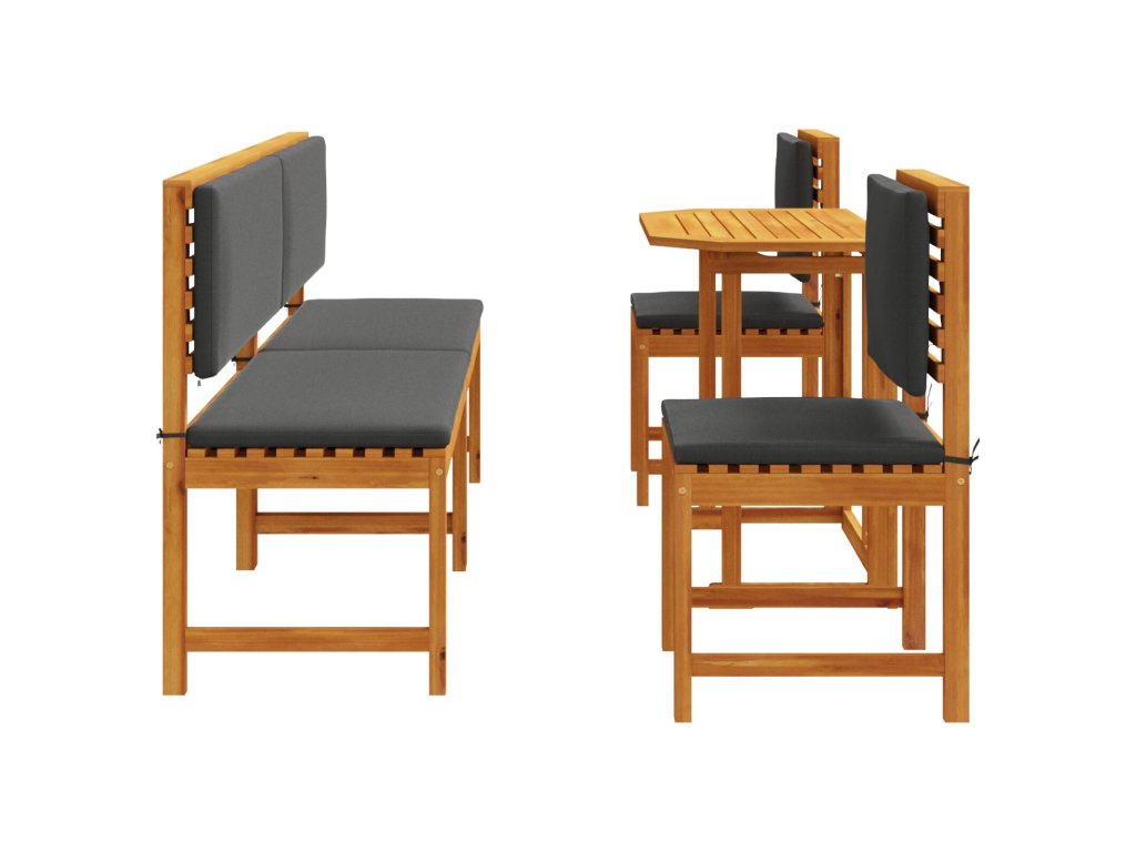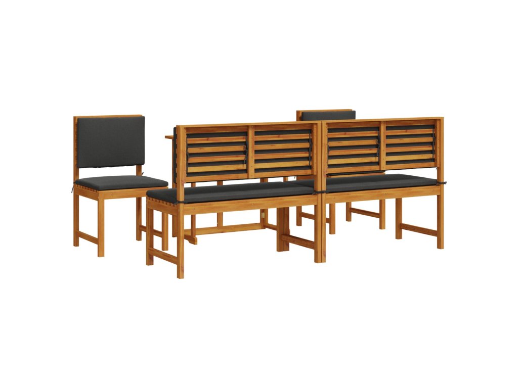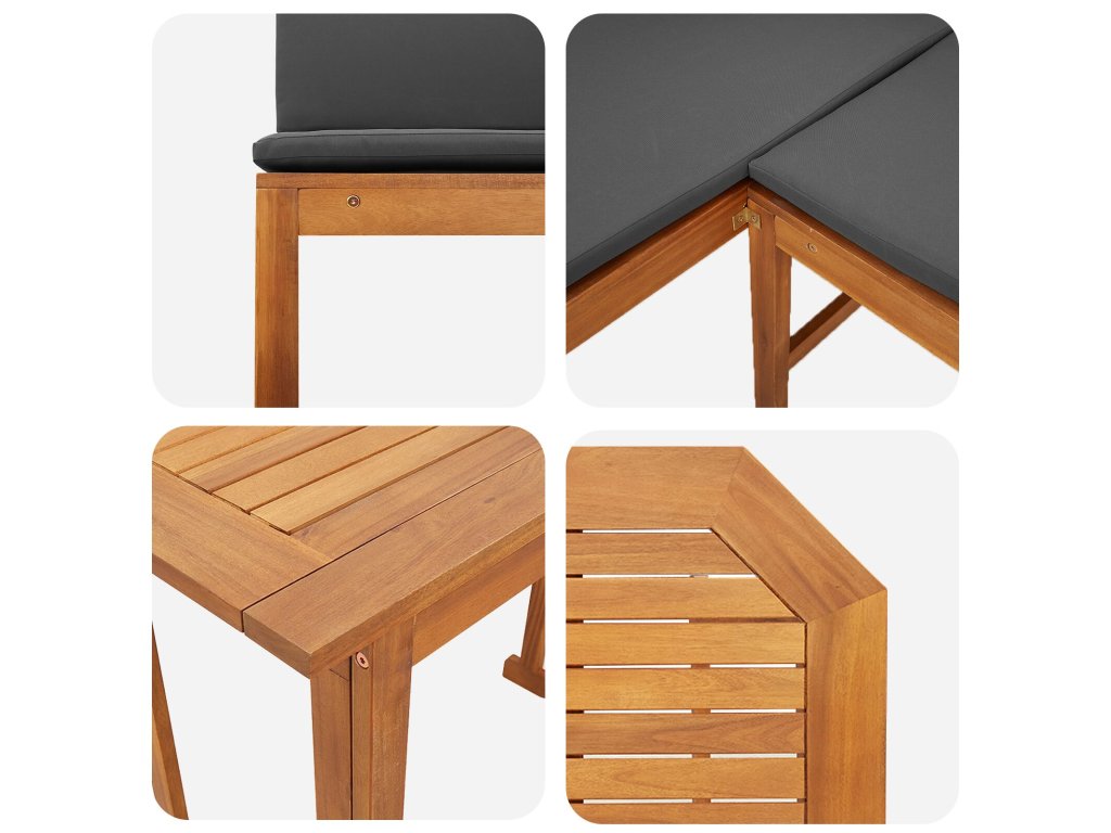 - Přírodní akáciové dřevo: Vyrobeno z masivního akáciového dřeva, souprava vypadá skvěle a je postavena tak, aby dlouho vydržela a odolávala rozmarům počasí, což ti poskytuje spolehlivého venkovního parťáka na dlouho.