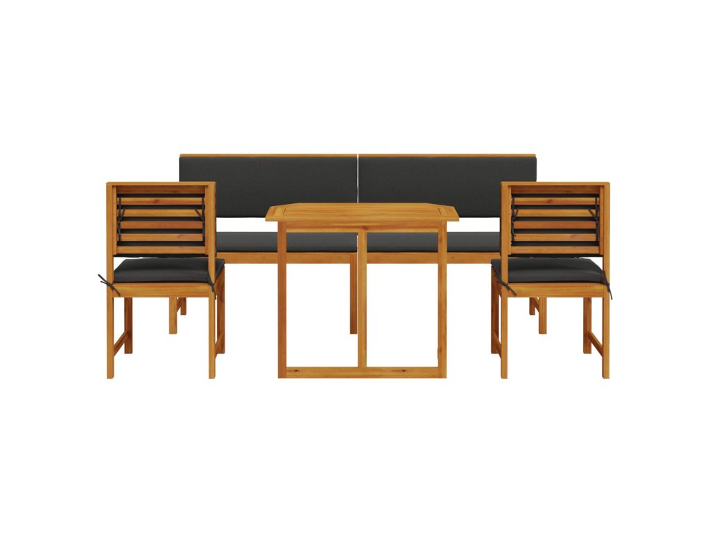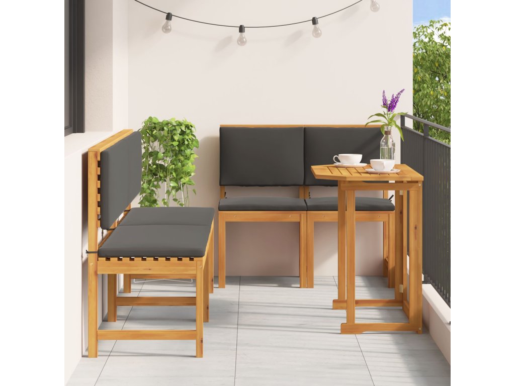 Tato kompaktní venkovní jídelní souprava je přesně to, co potřebuješ pro vychutnání jídla venku na menších prostorech. Vyrobeno z pevného masivního akáciového dřeva, je to stvořené, aby vydrželo a zároveň udrželo rustikální vzhled, který se hodí na každý balkon nebo terasu.