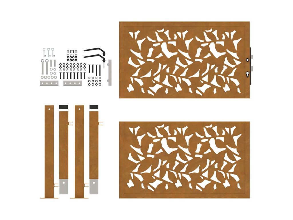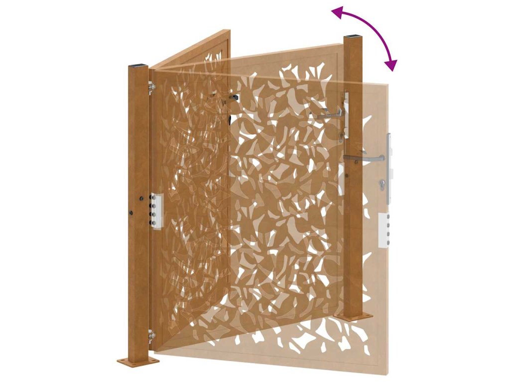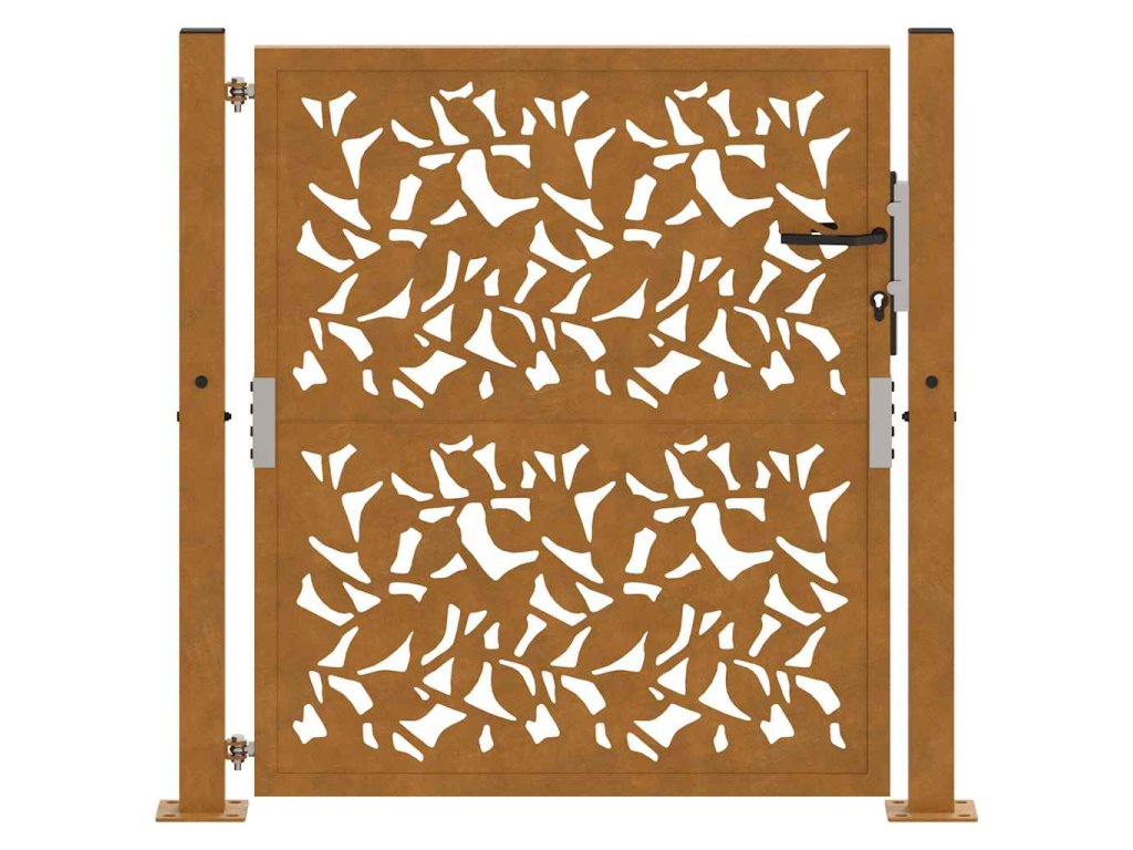 - Odolná konstrukce: Tato plotová brána je vyrobena z oceli odolné proti povětrnostním vlivům. Povětrnostně odolná ocel je ze své podstaty antikorozní. Při prvním vystavení atmosférickým podmínkám se na ní vytvoří ochranná vrstva proti korozi. Nemusíte ji tedy natírat. To vám může pomoci ušetřit náklady na údržbu a opravy. Výrazná hnědá barva na povětrnostní oceli jistě upoutá pozornost. V neposlední řadě je povětrnostní ocel výjimečně odolná a obstojí ve zkoušce času.