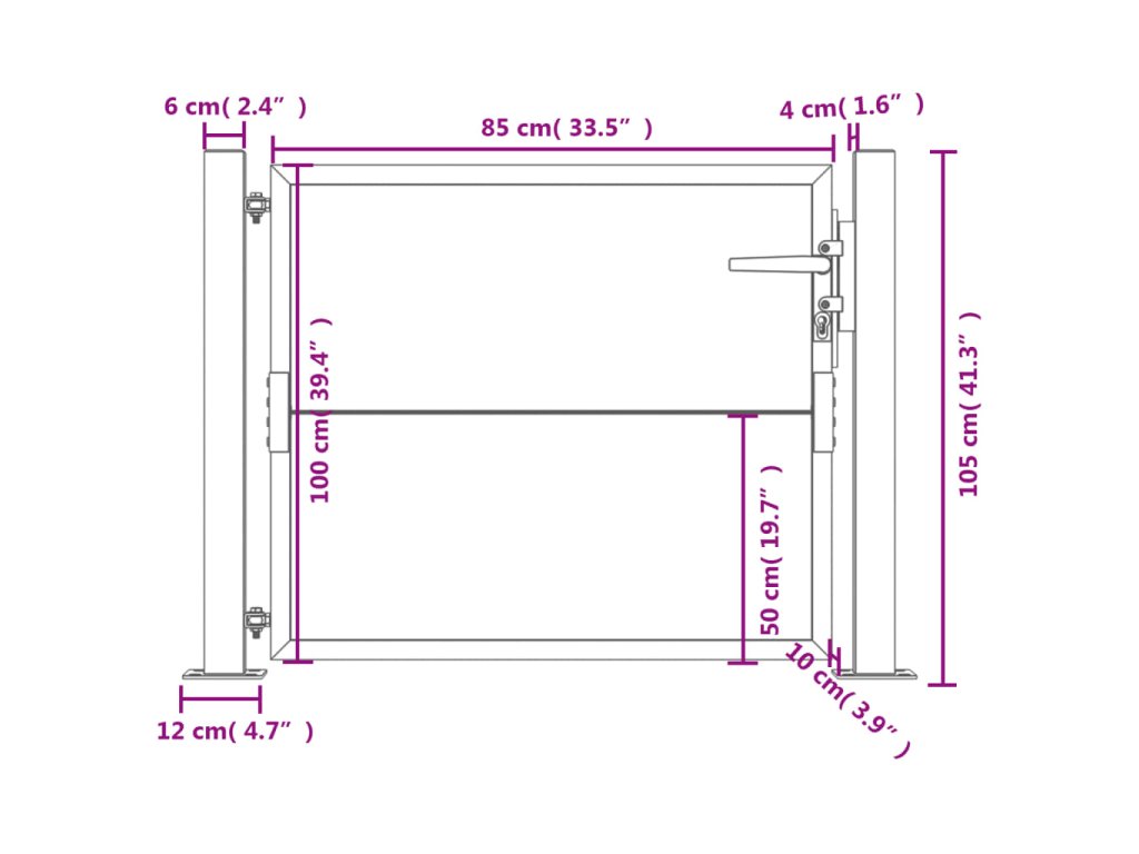 - Snadná montáž: Vstupní branka je dodávána se dvěma sloupky s přírubami a montážním příslušenstvím pro snadnou instalaci.