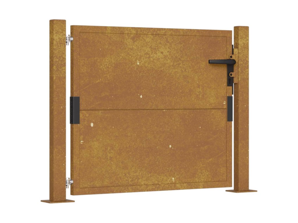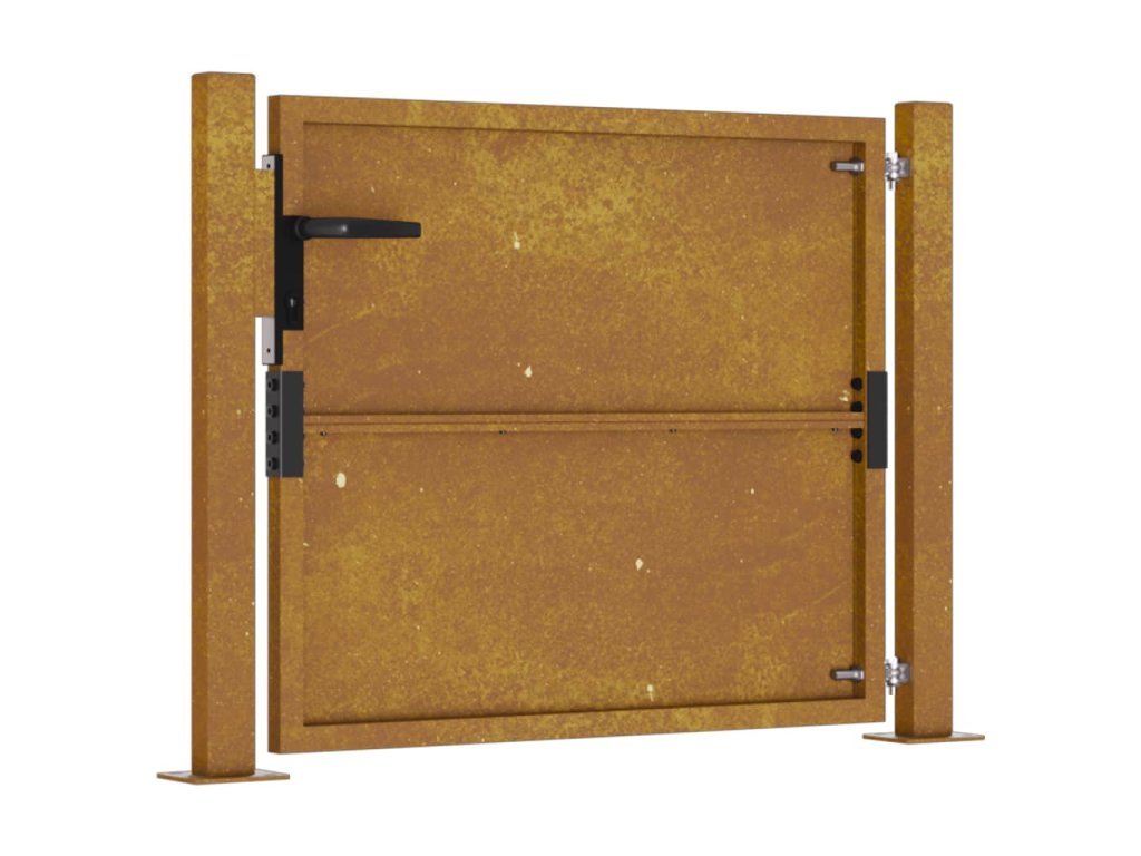 - Odolná konstrukce: Tato zahradní branka je vyrobená z cortenové oceli. Cortenová ocel, také známá jako povětrnostně odolná ocel. Je ze své podstaty antikorozní. Při prvním vystavení atmosférickým podmínkám se na ní vytvoří rezavá ochranná vrstva proti korozi. Nemusíte ji tedy natírat. Tím ušetříte náklady na údržbu a opravy. Výrazný hnědý odstín cortenové oceli jistě upoutá pozornost. Povětrnostně odolná ocel je výjimečně odolná a obstojí ve zkoušce času.
