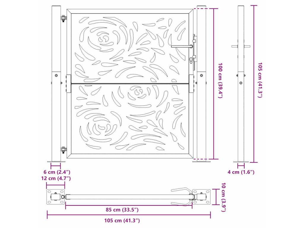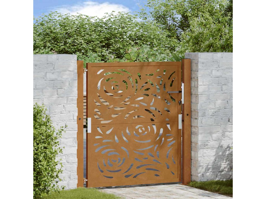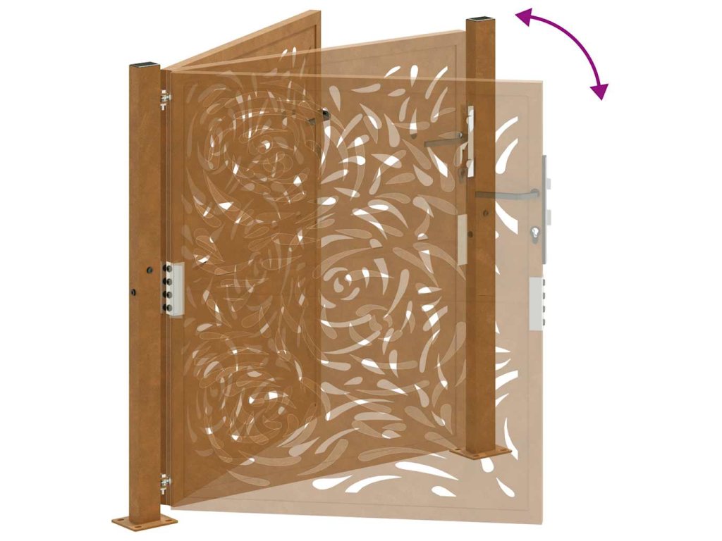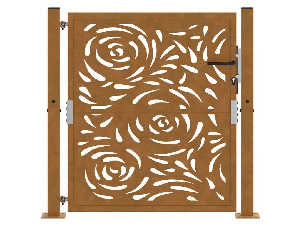 - Odolná konstrukce: Tato plotová brána je vyrobena z oceli odolné proti povětrnostním vlivům. Povětrnostně odolná ocel je ze své podstaty antikorozní. Při prvním vystavení atmosférickým podmínkám se na ní vytvoří ochranná vrstva proti korozi. Nemusíte ji tedy natírat. To vám může pomoci ušetřit náklady na údržbu a opravy. Výrazná hnědá barva na povětrnostní oceli jistě upoutá pozornost. V neposlední řadě je povětrnostní ocel výjimečně odolná a obstojí ve zkoušce času.