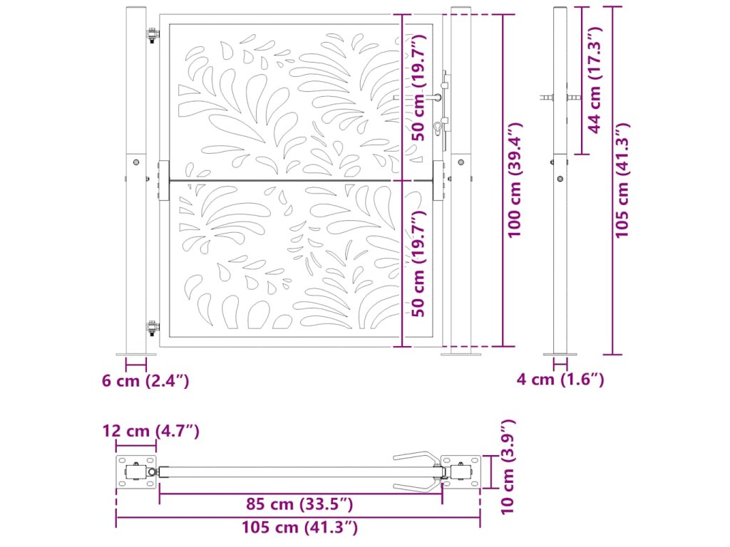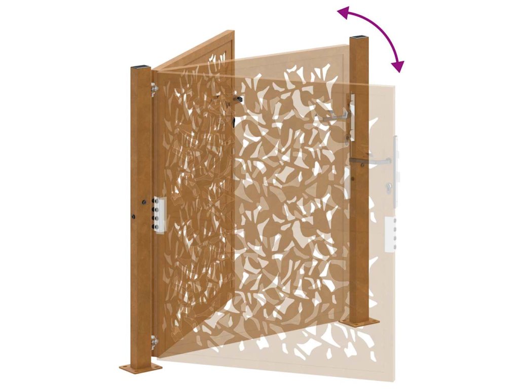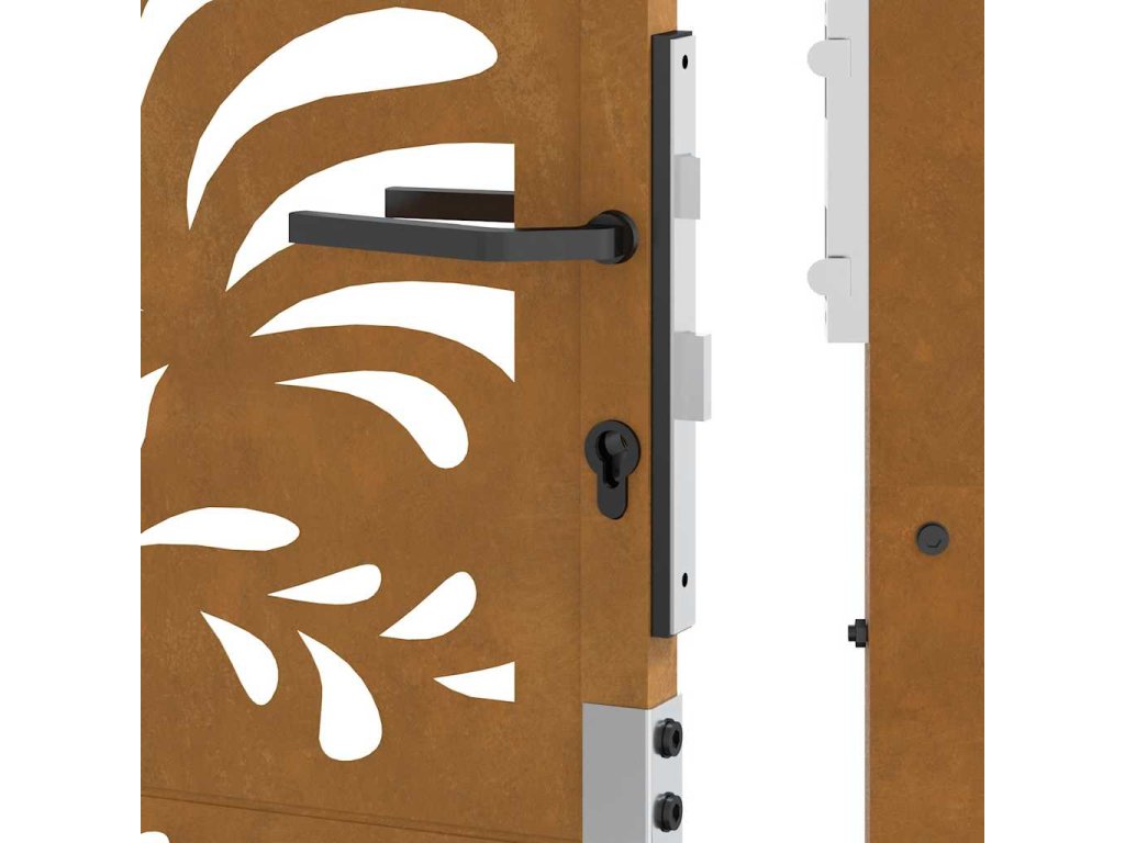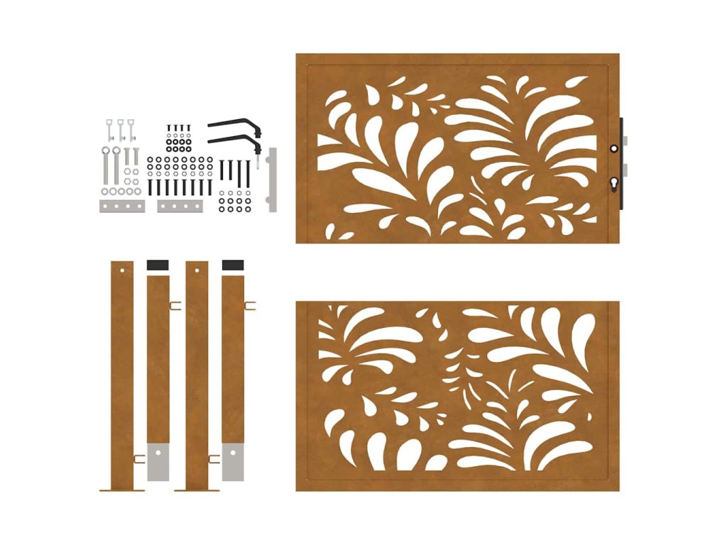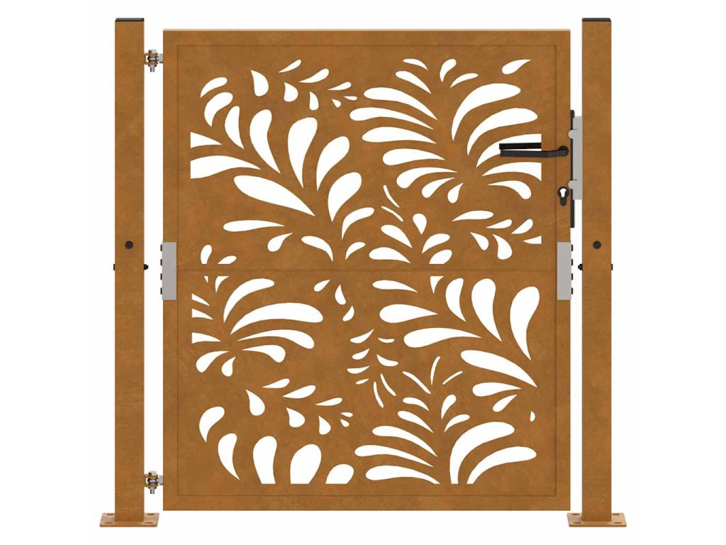 - Odolná konstrukce: Tato plotová brána je vyrobena z oceli odolné proti povětrnostním vlivům. Povětrnostně odolná ocel je ze své podstaty antikorozní. Při prvním vystavení atmosférickým podmínkám se na ní vytvoří ochranná vrstva proti korozi. Nemusíte ji tedy natírat. To vám může pomoci ušetřit náklady na údržbu a opravy. Výrazná hnědá barva na povětrnostní oceli jistě upoutá pozornost. V neposlední řadě je povětrnostní ocel výjimečně odolná a obstojí ve zkoušce času.