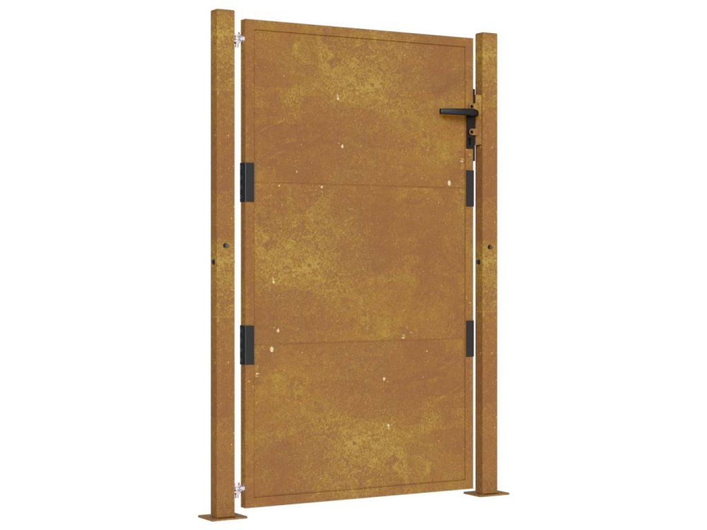 - Odolná konstrukce: Tato zahradní branka je vyrobená z cortenové oceli. Cortenová ocel, také známá jako povětrnostně odolná ocel. Je ze své podstaty antikorozní. Při prvním vystavení atmosférickým podmínkám se na ní vytvoří rezavá ochranná vrstva proti korozi. Nemusíte ji tedy natírat. Tím ušetříte náklady na údržbu a opravy. Výrazný hnědý odstín cortenové oceli jistě upoutá pozornost. Povětrnostně odolná ocel je výjimečně odolná a obstojí ve zkoušce času.