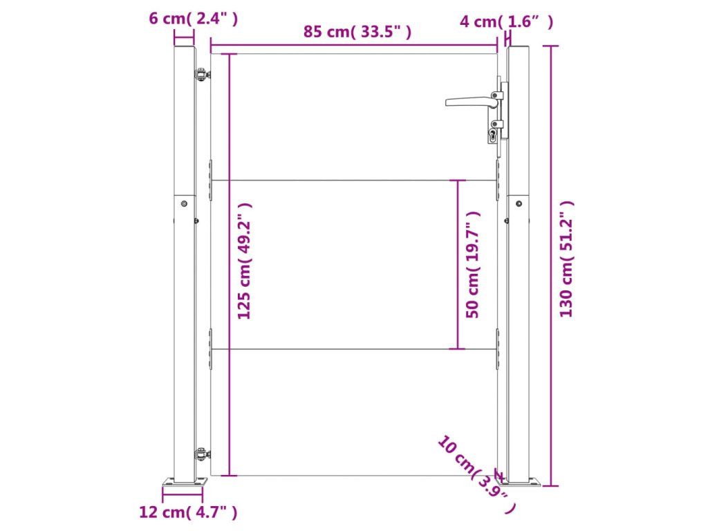 - Uzamykatelný systém: Ocelová branka je pro větší bezpečnost vybavená uzamykatelným systémem.