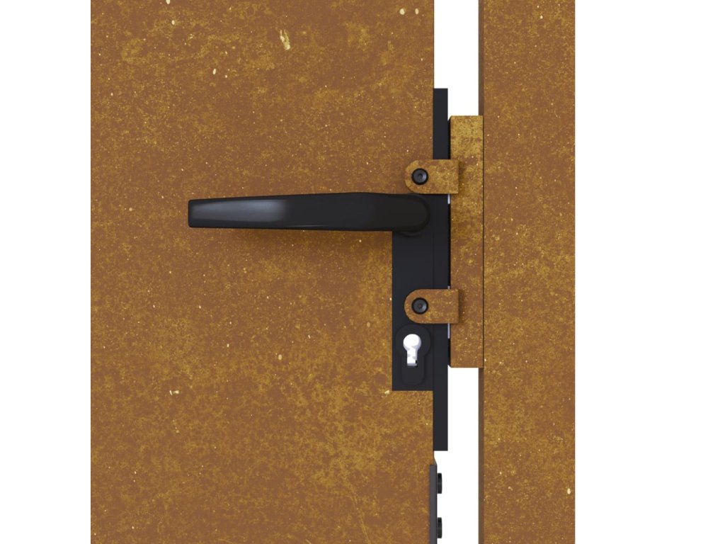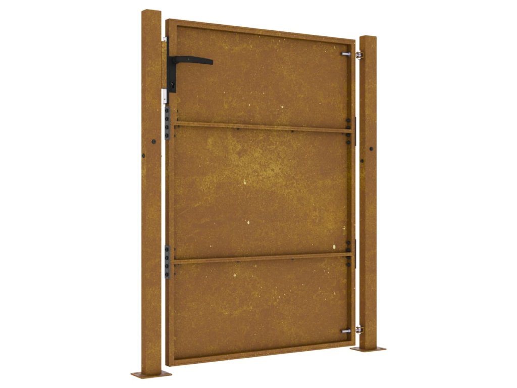 - Materiál s dlouhou životností: Kovová branka je vyrobená z cortenové oceli. Cortenová ocel, také známá jako povětrnostně odolná ocel. Je ze své podstaty antikorozní. Při prvním vystavení atmosférickým podmínkám se na ní vytvoří rezavá ochranná vrstva proti korozi. Nemusíte ji tedy natírat. Tím ušetříte náklady na údržbu a opravy. Výrazný hnědý odstín cortenové oceli jistě upoutá pozornost. Povětrnostně odolná ocel je výjimečně odolná a obstojí ve zkoušce času.