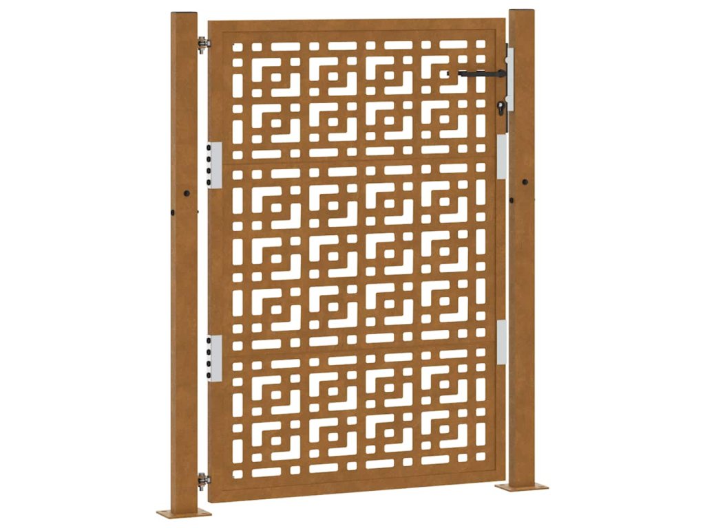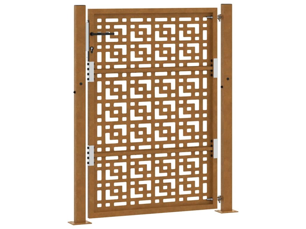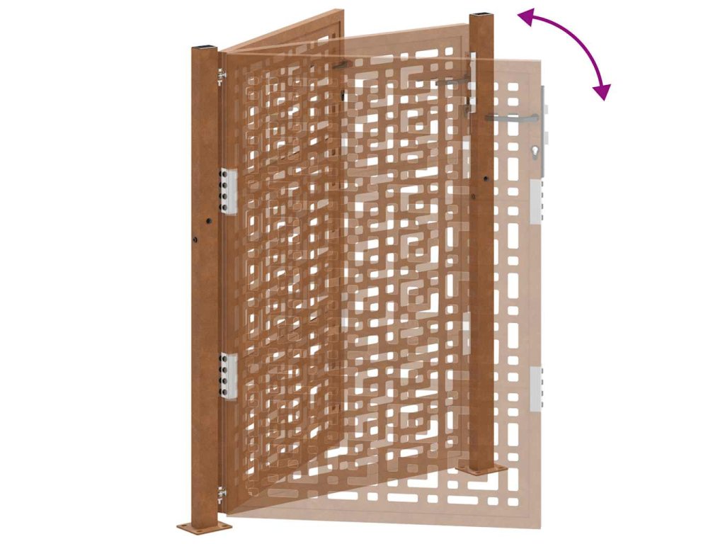 - Odolná konstrukce: Tato plotová brána je vyrobena z oceli odolné proti povětrnostním vlivům. Povětrnostně odolná ocel je ze své podstaty antikorozní. Při prvním vystavení atmosférickým podmínkám se na ní vytvoří ochranná vrstva proti korozi. Nemusíte ji tedy natírat. To vám může pomoci ušetřit náklady na údržbu a opravy. Výrazná hnědá barva na povětrnostní oceli jistě upoutá pozornost. V neposlední řadě je povětrnostní ocel výjimečně odolná a obstojí ve zkoušce času.