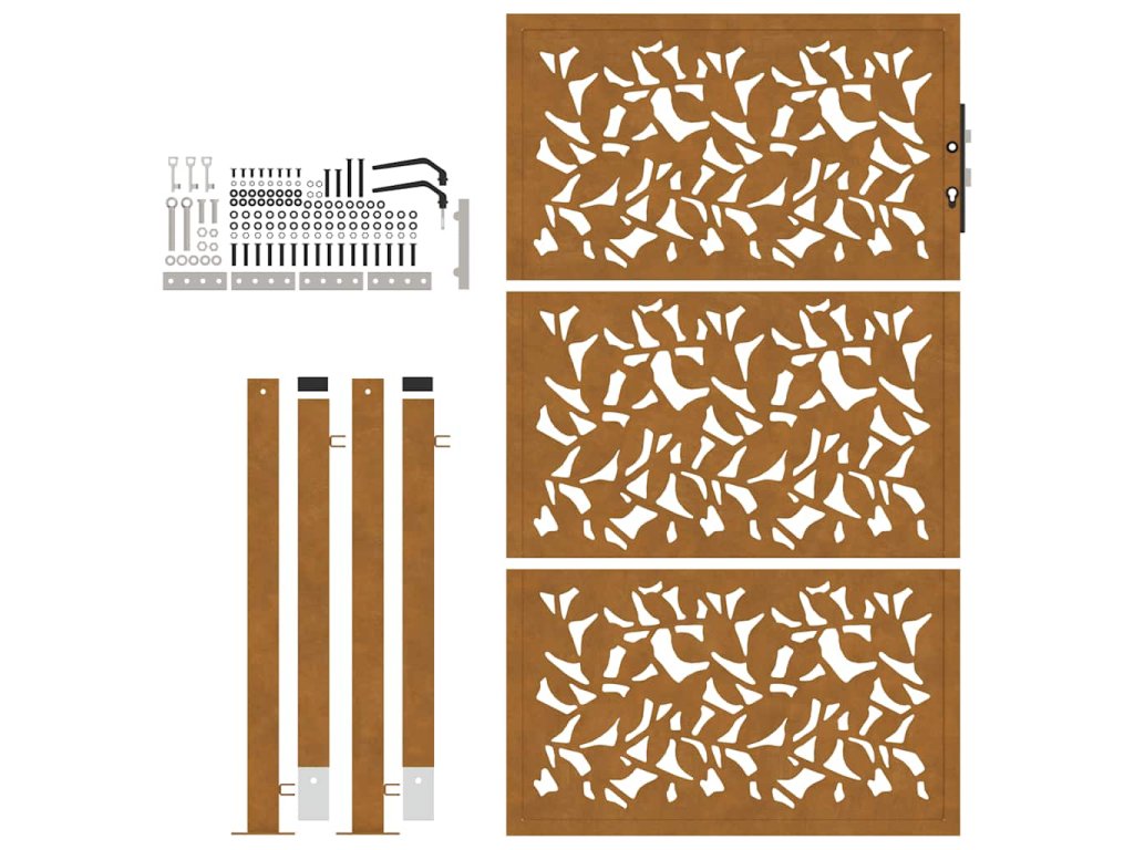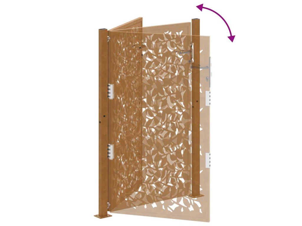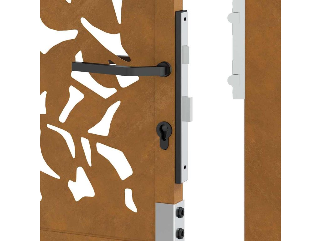 - Odolná konstrukce: Tato plotová brána je vyrobena z oceli odolné proti povětrnostním vlivům. Povětrnostně odolná ocel je ze své podstaty antikorozní. Při prvním vystavení atmosférickým podmínkám se na ní vytvoří ochranná vrstva proti korozi. Nemusíte ji tedy natírat. To vám může pomoci ušetřit náklady na údržbu a opravy. Výrazná hnědá barva na povětrnostní oceli jistě upoutá pozornost. V neposlední řadě je povětrnostní ocel výjimečně odolná a obstojí ve zkoušce času.