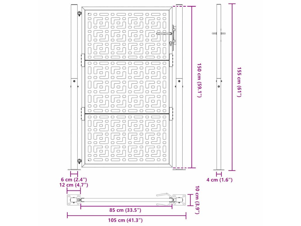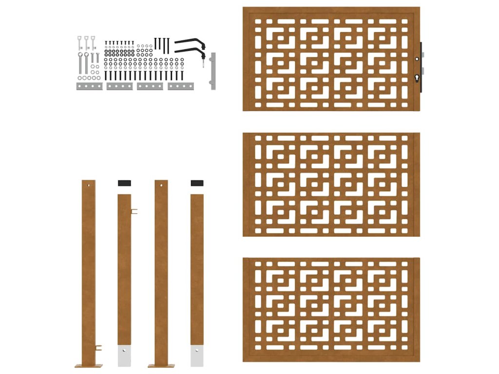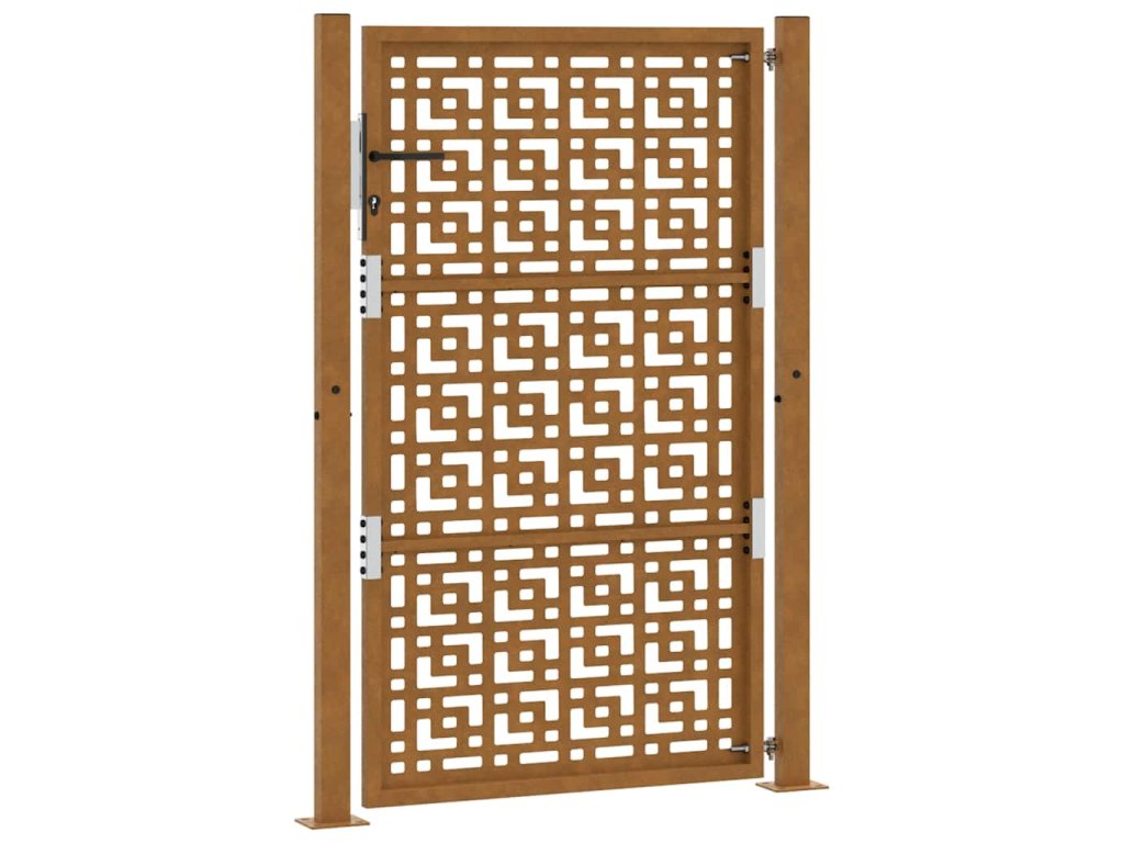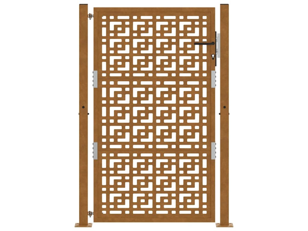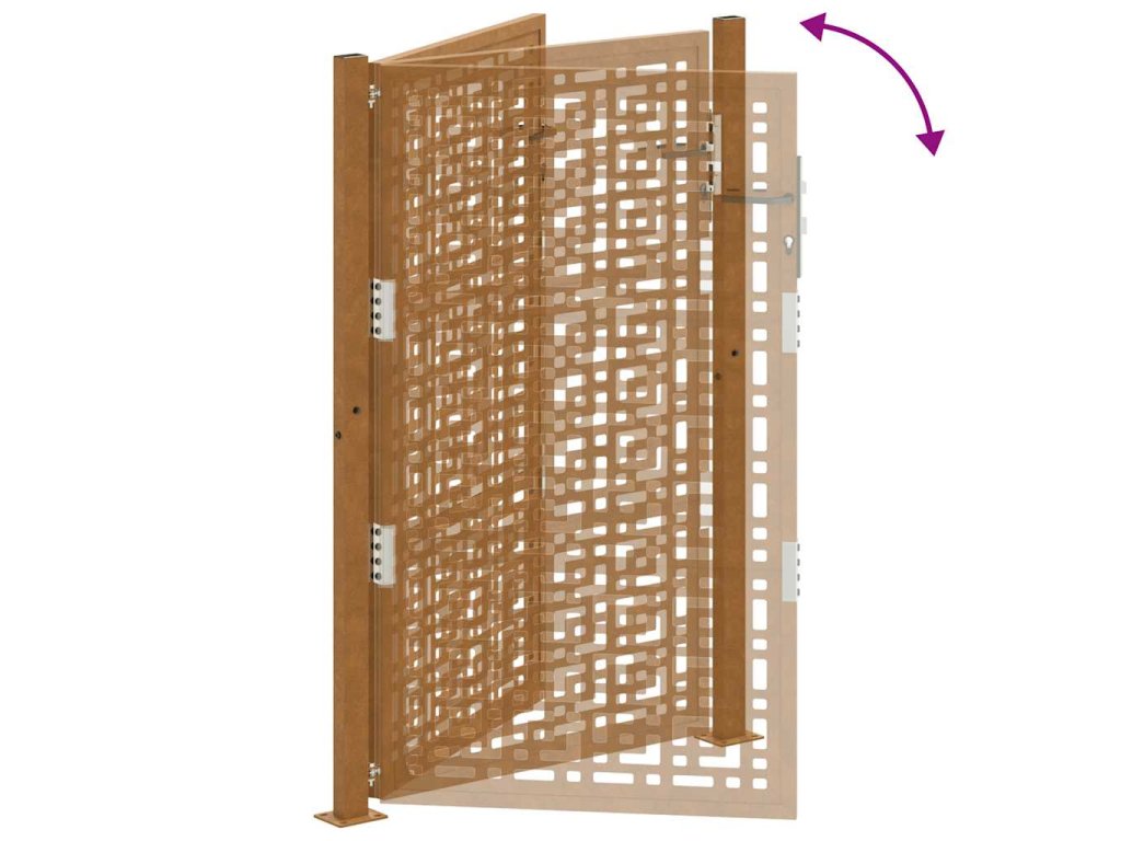 - Odolná konstrukce: Tato plotová brána je vyrobena z oceli odolné proti povětrnostním vlivům. Povětrnostně odolná ocel je ze své podstaty antikorozní. Při prvním vystavení atmosférickým podmínkám se na ní vytvoří ochranná vrstva proti korozi. Nemusíte ji tedy natírat. To vám může pomoci ušetřit náklady na údržbu a opravy. Výrazná hnědá barva na povětrnostní oceli jistě upoutá pozornost. V neposlední řadě je povětrnostní ocel výjimečně odolná a obstojí ve zkoušce času.