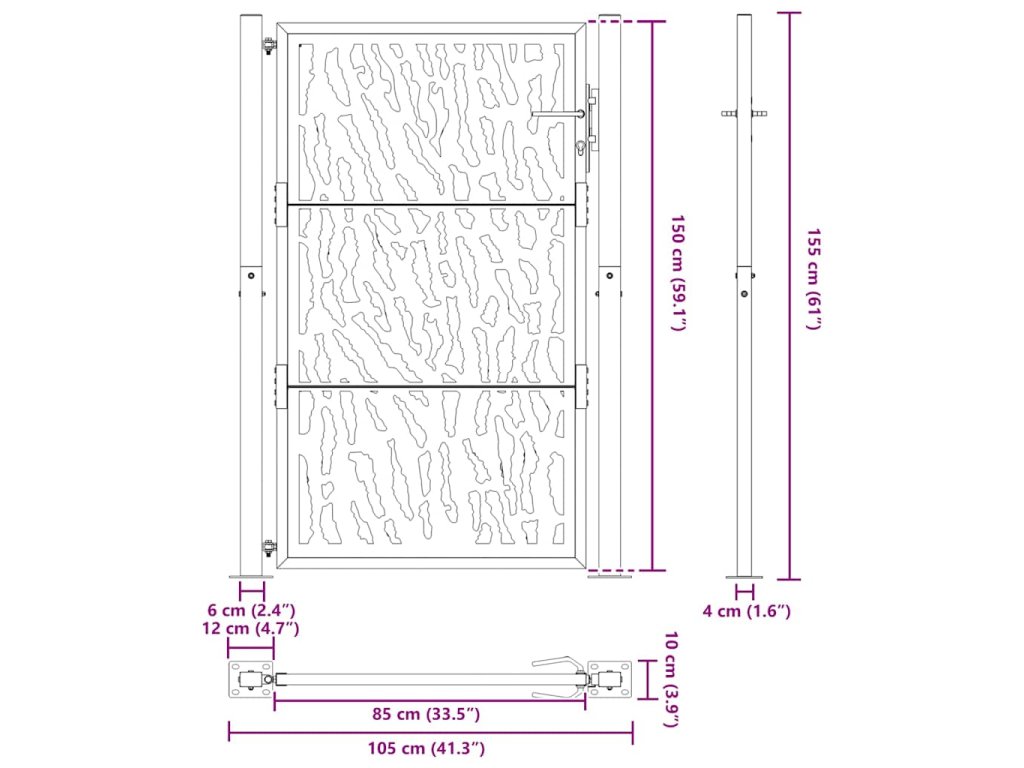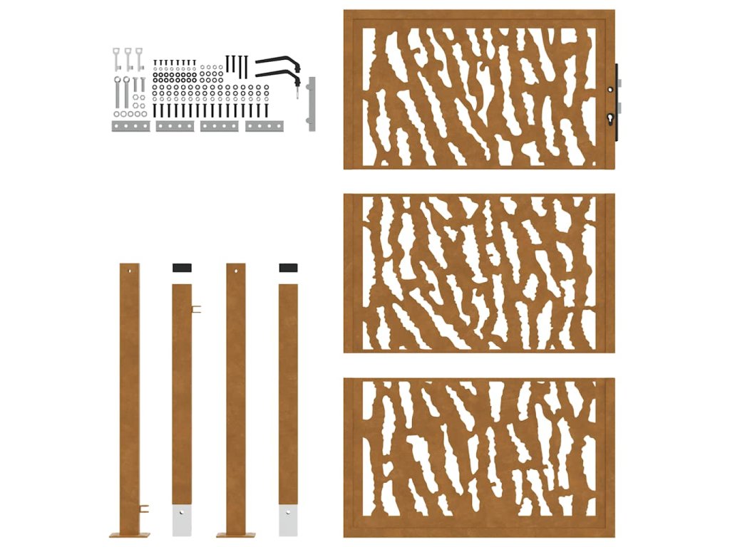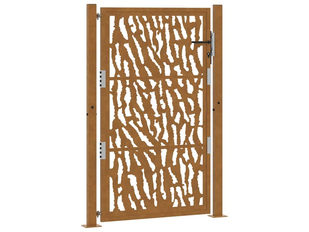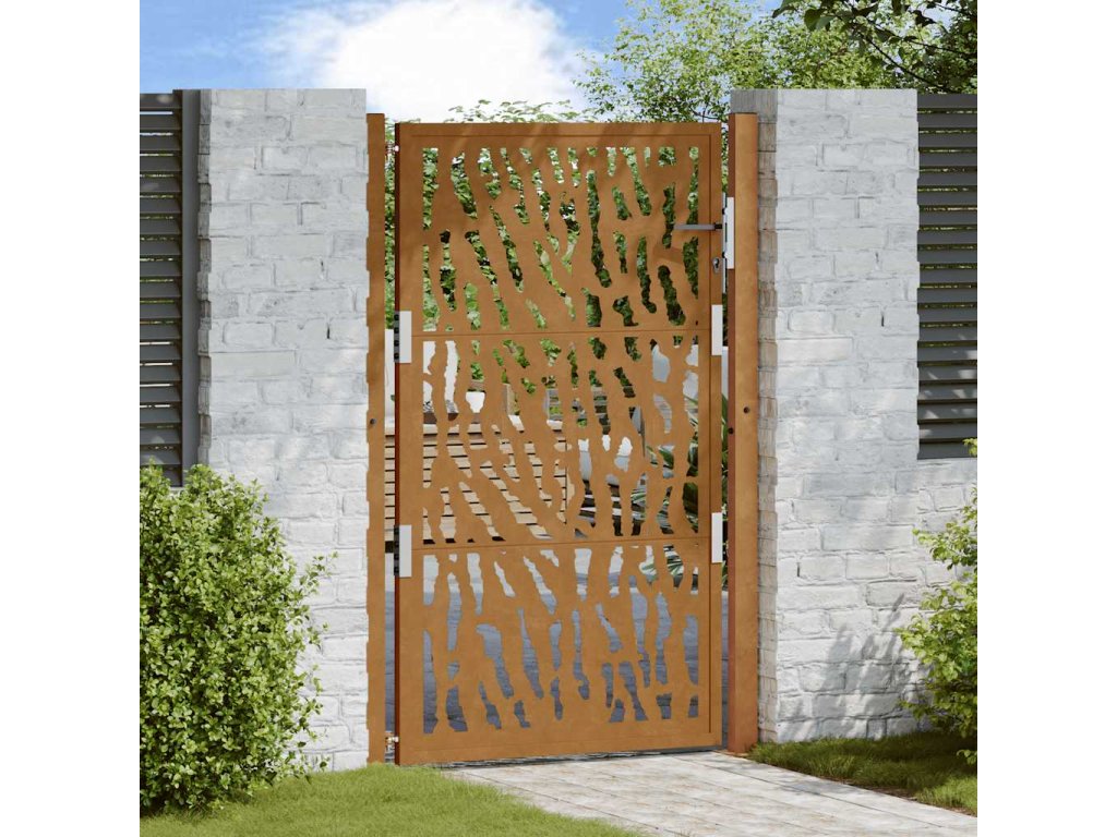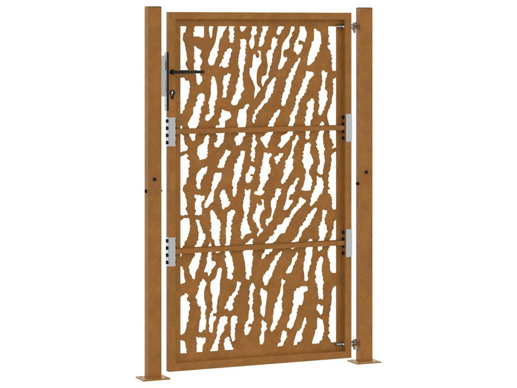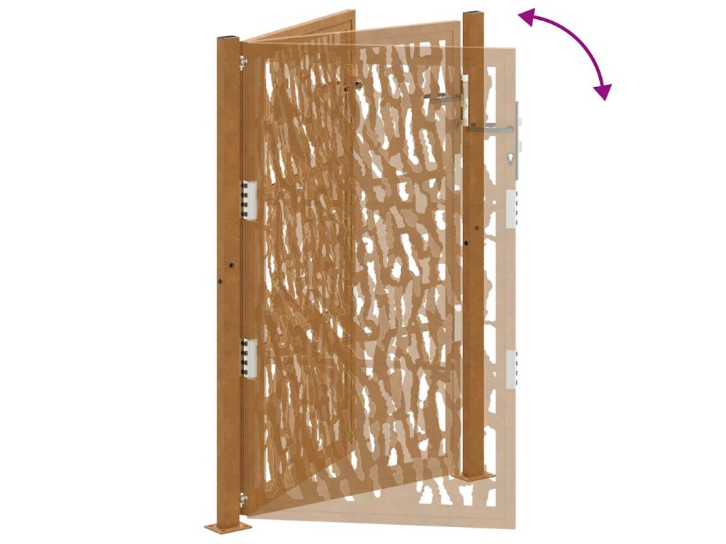 - Odolná konstrukce: Tato plotová brána je vyrobena z oceli odolné proti povětrnostním vlivům. Povětrnostně odolná ocel je ze své podstaty antikorozní. Při prvním vystavení atmosférickým podmínkám se na ní vytvoří ochranná vrstva proti korozi. Nemusíte ji tedy natírat. To vám může pomoci ušetřit náklady na údržbu a opravy. Výrazná hnědá barva na povětrnostní oceli jistě upoutá pozornost. V neposlední řadě je povětrnostní ocel výjimečně odolná a obstojí ve zkoušce času.