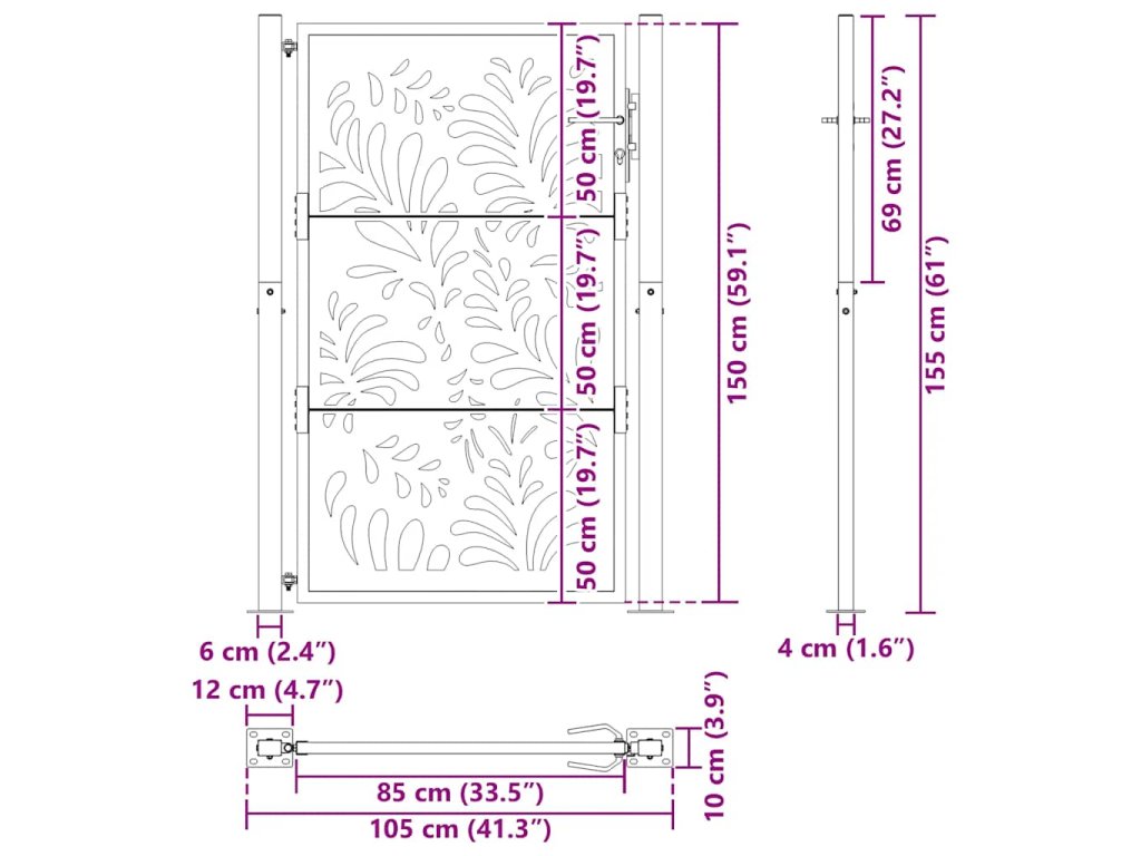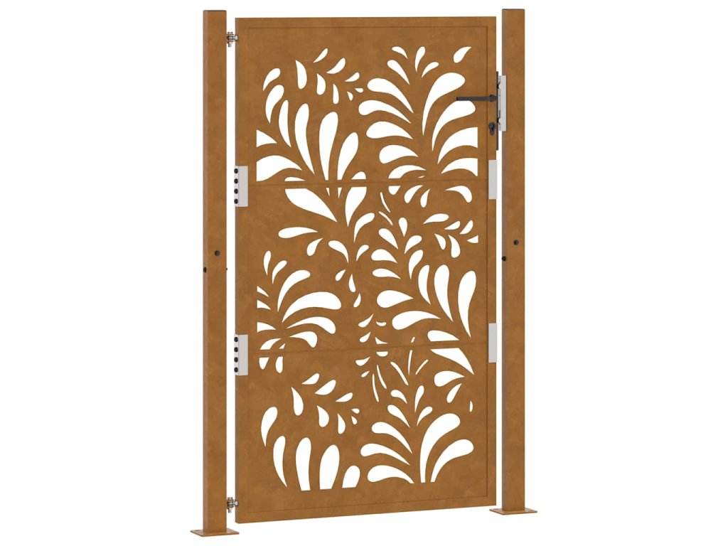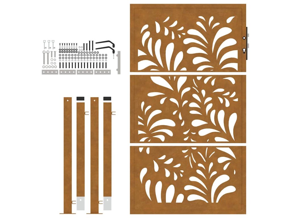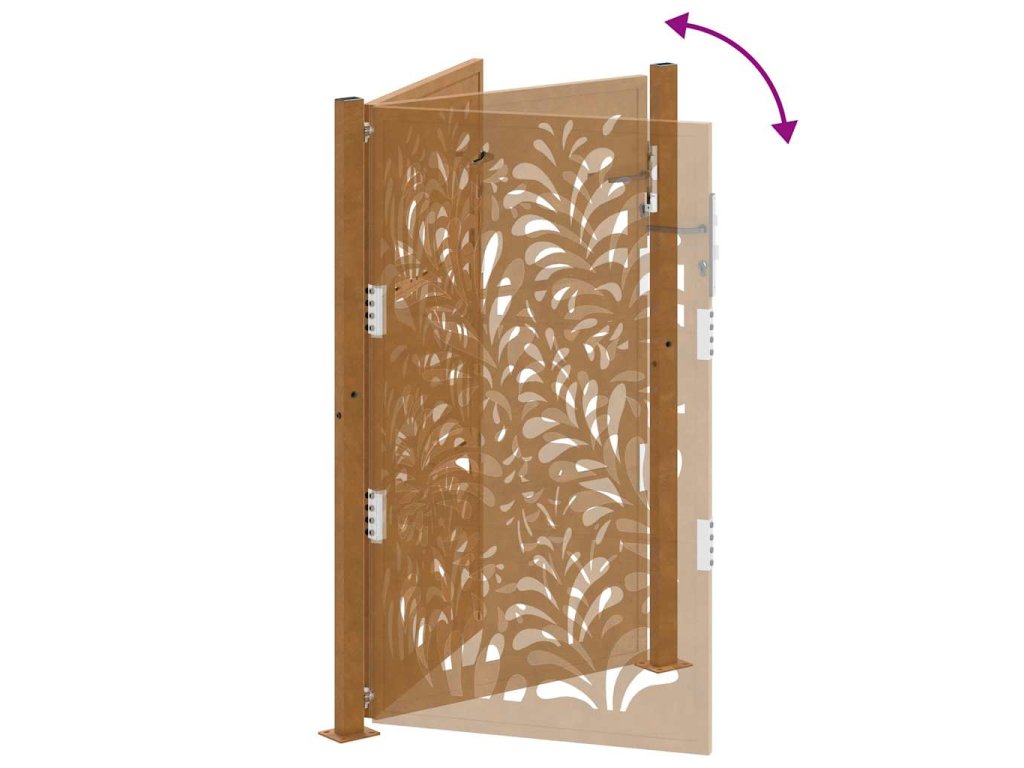 - Odolná konstrukce: Tato plotová brána je vyrobena z oceli odolné proti povětrnostním vlivům. Povětrnostně odolná ocel je ze své podstaty antikorozní. Při prvním vystavení atmosférickým podmínkám se na ní vytvoří ochranná vrstva proti korozi. Nemusíte ji tedy natírat. To vám může pomoci ušetřit náklady na údržbu a opravy. Výrazná hnědá barva na povětrnostní oceli jistě upoutá pozornost. V neposlední řadě je povětrnostní ocel výjimečně odolná a obstojí ve zkoušce času.