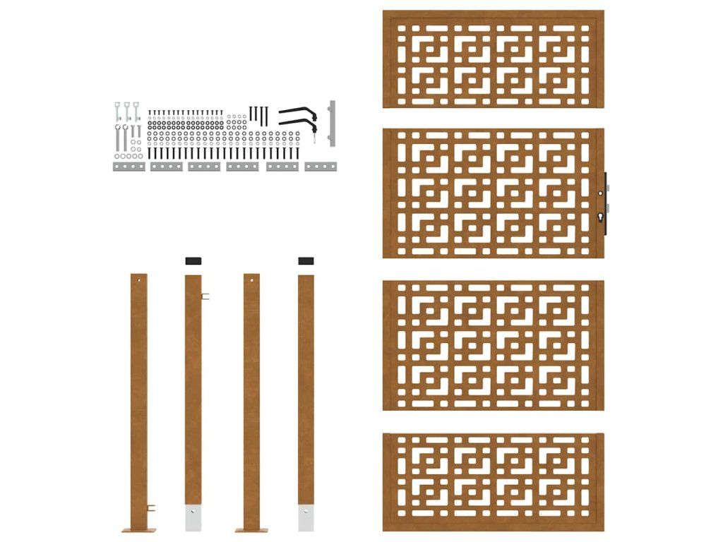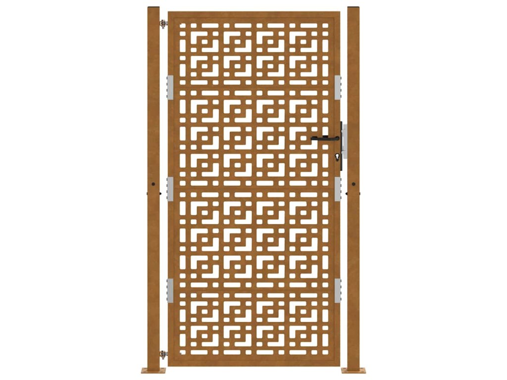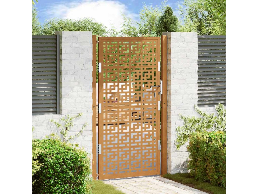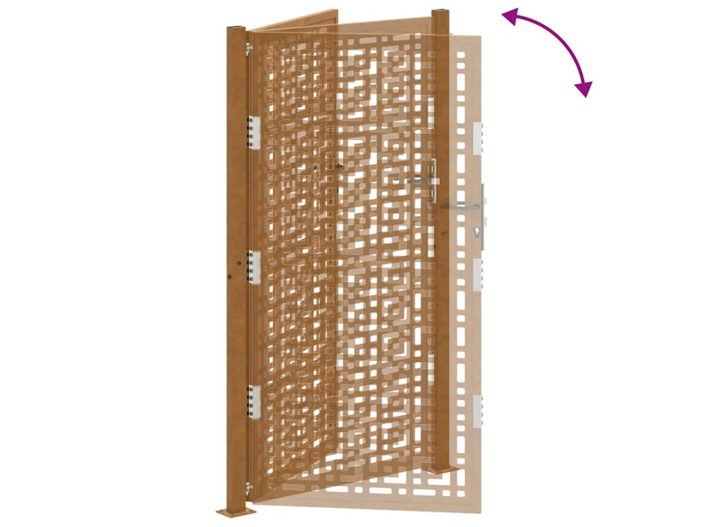 - Odolná konstrukce: Tato plotová brána je vyrobena z oceli odolné proti povětrnostním vlivům. Povětrnostně odolná ocel je ze své podstaty antikorozní. Při prvním vystavení atmosférickým podmínkám se na ní vytvoří ochranná vrstva proti korozi. Nemusíte ji tedy natírat. To vám může pomoci ušetřit náklady na údržbu a opravy. Výrazná hnědá barva na povětrnostní oceli jistě upoutá pozornost. V neposlední řadě je povětrnostní ocel výjimečně odolná a obstojí ve zkoušce času.