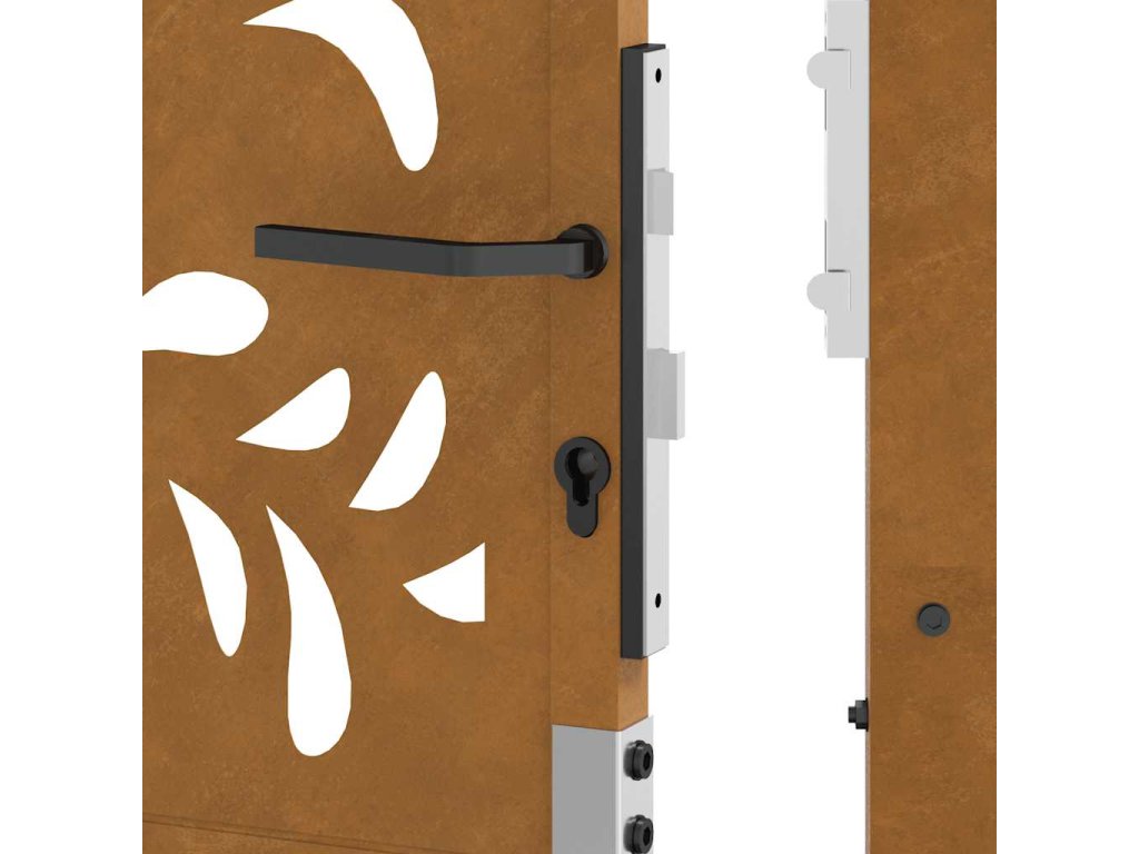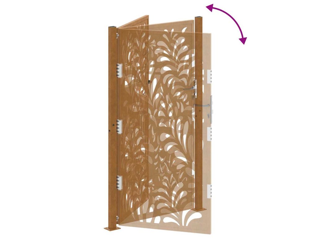 - Odolná konstrukce: Tato plotová brána je vyrobena z oceli odolné proti povětrnostním vlivům. Povětrnostně odolná ocel je ze své podstaty antikorozní. Při prvním vystavení atmosférickým podmínkám se na ní vytvoří ochranná vrstva proti korozi. Nemusíte ji tedy natírat. To vám může pomoci ušetřit náklady na údržbu a opravy. Výrazná hnědá barva na povětrnostní oceli jistě upoutá pozornost. V neposlední řadě je povětrnostní ocel výjimečně odolná a obstojí ve zkoušce času.