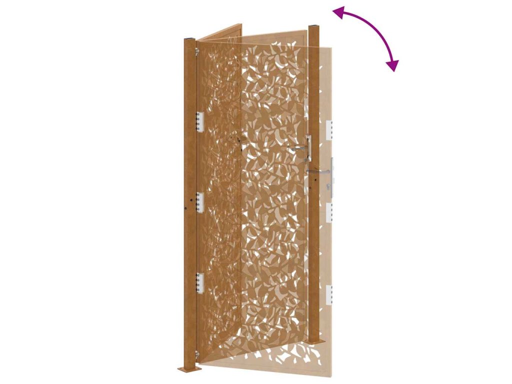 - Odolná konstrukce: Tato plotová brána je vyrobena z oceli odolné proti povětrnostním vlivům. Povětrnostně odolná ocel je ze své podstaty antikorozní. Při prvním vystavení atmosférickým podmínkám se na ní vytvoří ochranná vrstva proti korozi. Nemusíte ji tedy natírat. To vám může pomoci ušetřit náklady na údržbu a opravy. Výrazná hnědá barva na povětrnostní oceli jistě upoutá pozornost. V neposlední řadě je povětrnostní ocel výjimečně odolná a obstojí ve zkoušce času.