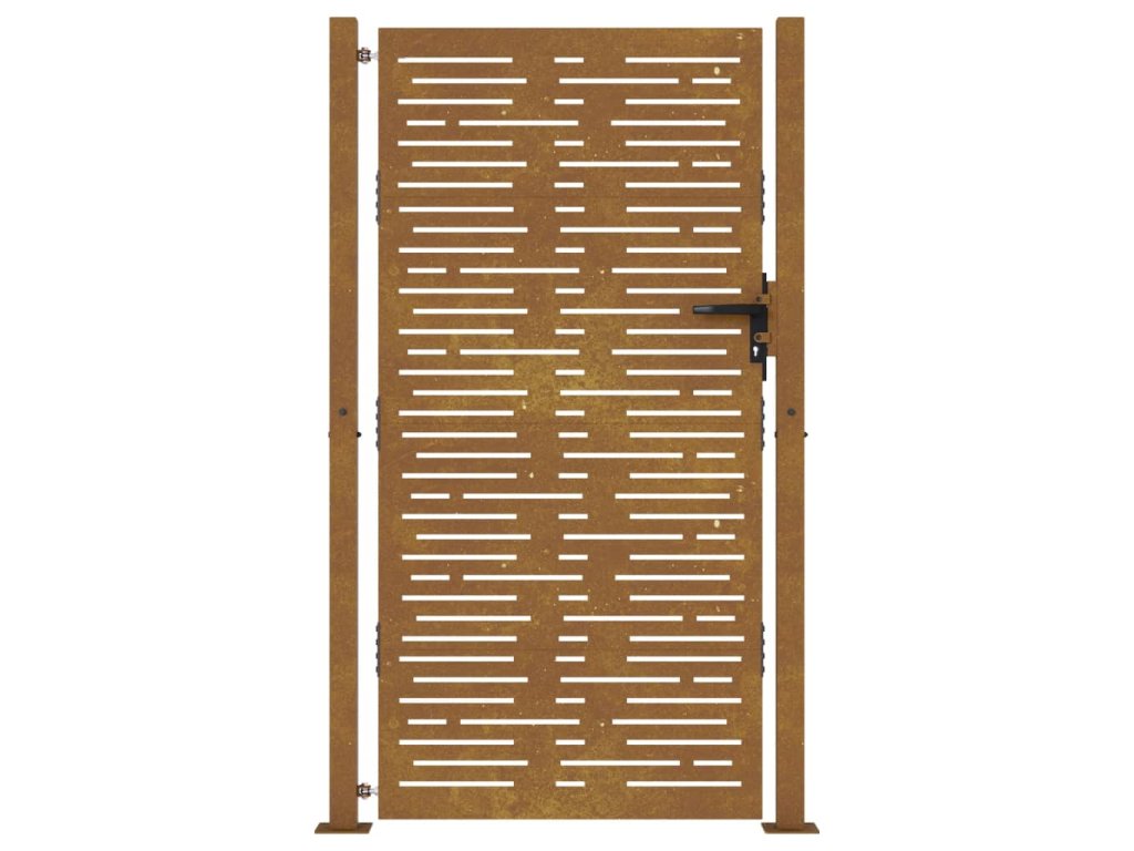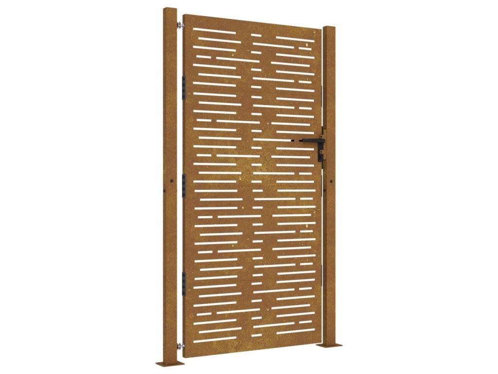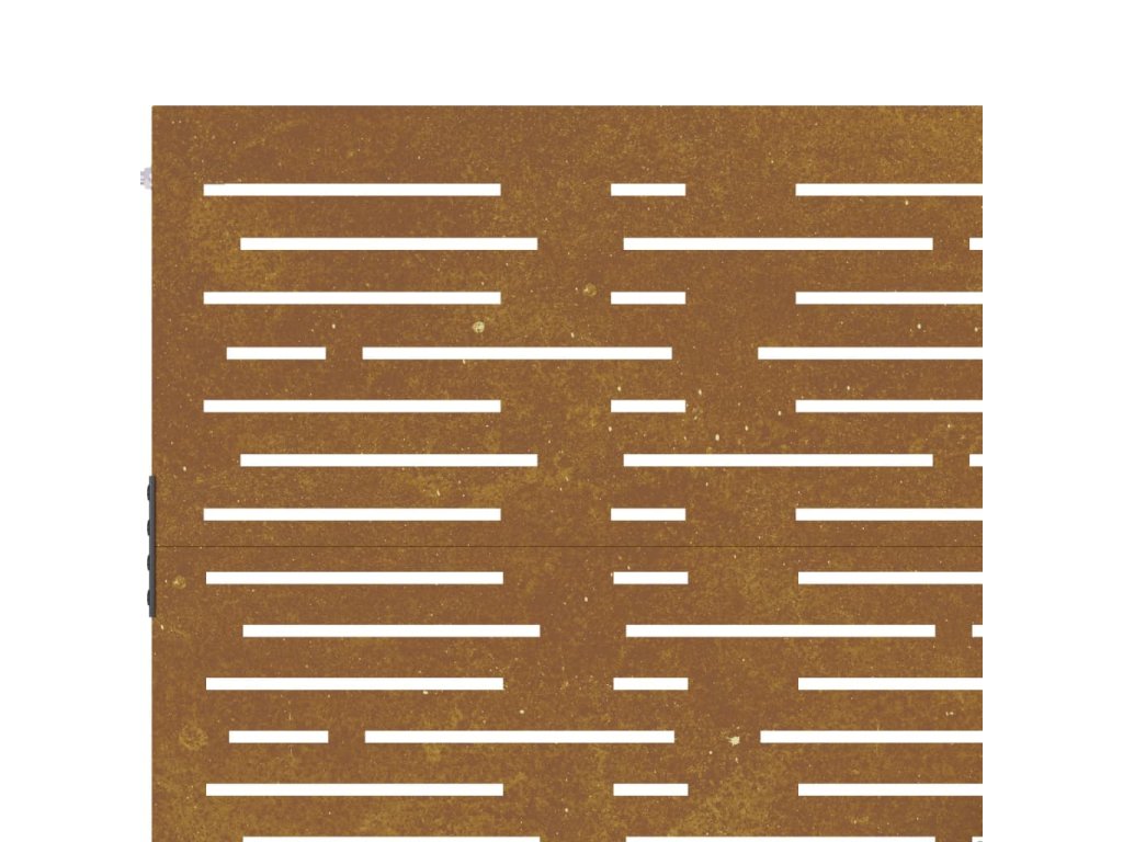 - Materiál s dlouhou životností: Kovová branka je vyrobená z cortenové oceli. Cortenová ocel, také známá jako povětrnostně odolná ocel. Je ze své podstaty antikorozní. Při prvním vystavení atmosférickým podmínkám se na ní vytvoří rezavá ochranná vrstva proti korozi. Nemusíte ji tedy natírat. Tím ušetříte náklady na údržbu a opravy. Výrazný hnědý odstín cortenové oceli jistě upoutá pozornost. Povětrnostně odolná ocel je výjimečně odolná a obstojí ve zkoušce času.