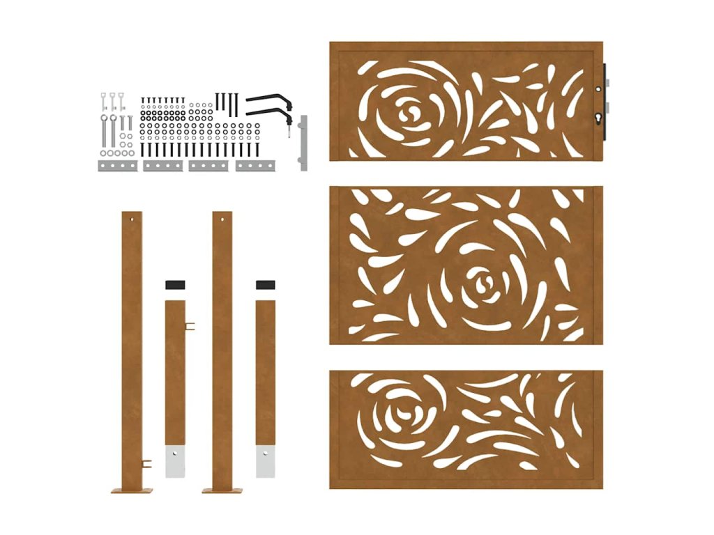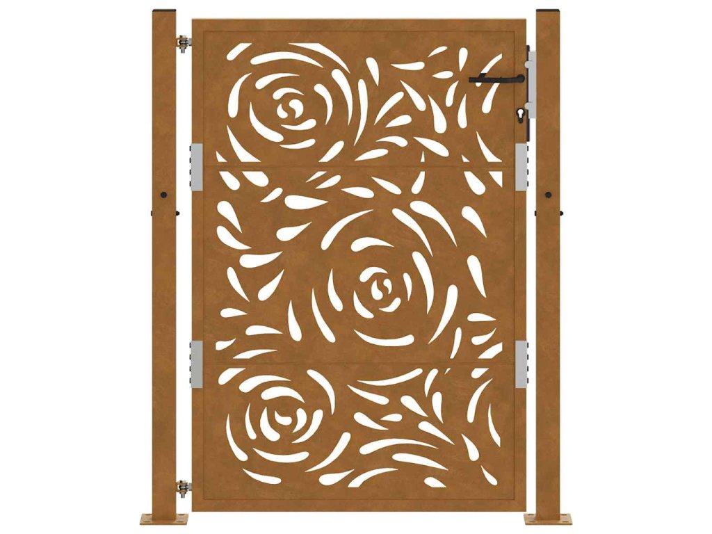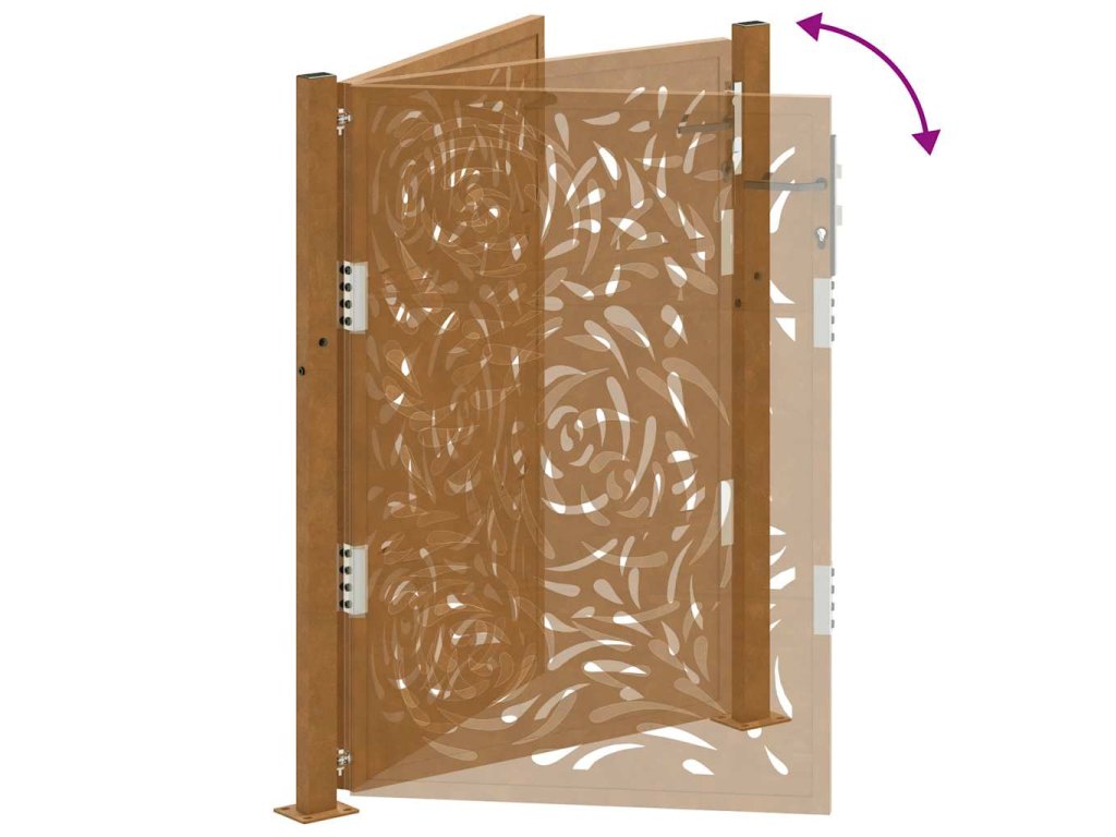 - Odolná konstrukce: Tato plotová brána je vyrobena z oceli odolné proti povětrnostním vlivům. Povětrnostně odolná ocel je ze své podstaty antikorozní. Při prvním vystavení atmosférickým podmínkám se na ní vytvoří ochranná vrstva proti korozi. Nemusíte ji tedy natírat. To vám může pomoci ušetřit náklady na údržbu a opravy. Výrazná hnědá barva na povětrnostní oceli jistě upoutá pozornost. V neposlední řadě je povětrnostní ocel výjimečně odolná a obstojí ve zkoušce času.