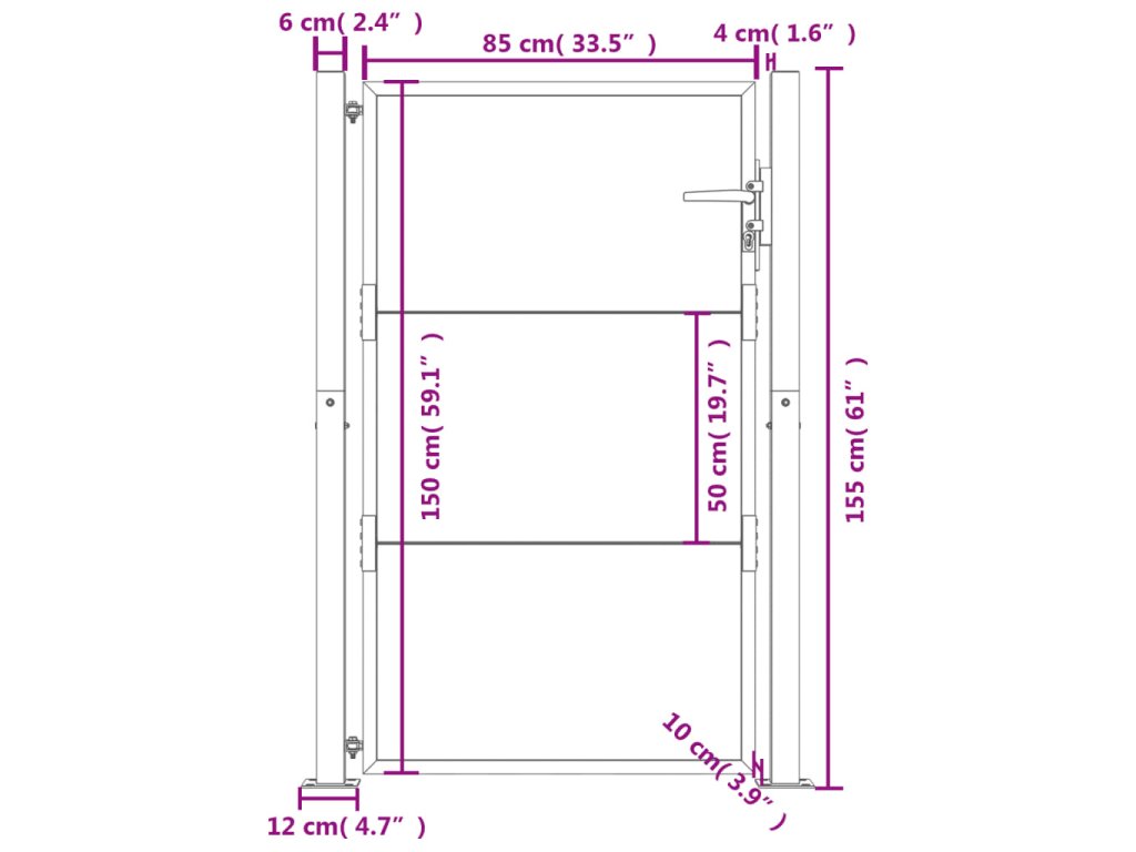 - Snadná montáž: Vstupní branka je dodávána se dvěma sloupky s přírubami a montážním příslušenstvím pro snadnou instalaci.