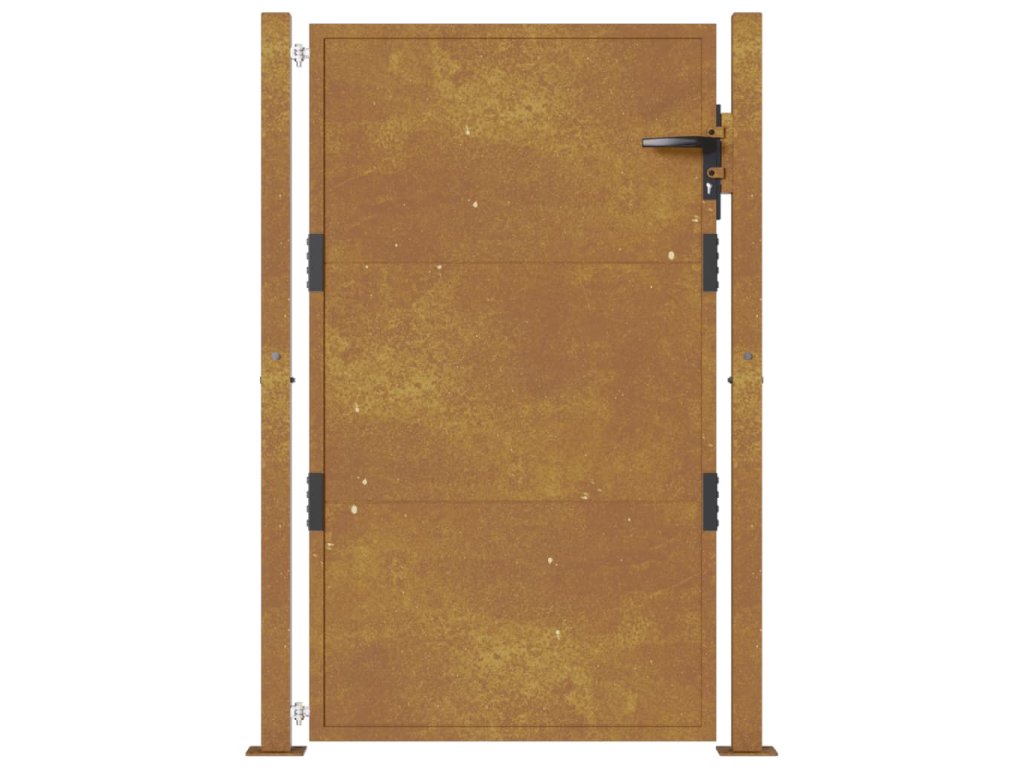- Odolná konstrukce: Tato zahradní branka je vyrobená z cortenové oceli. Cortenová ocel, také známá jako povětrnostně odolná ocel. Je ze své podstaty antikorozní. Při prvním vystavení atmosférickým podmínkám se na ní vytvoří rezavá ochranná vrstva proti korozi. Nemusíte ji tedy natírat. Tím ušetříte náklady na údržbu a opravy. Výrazný hnědý odstín cortenové oceli jistě upoutá pozornost. Povětrnostně odolná ocel je výjimečně odolná a obstojí ve zkoušce času.