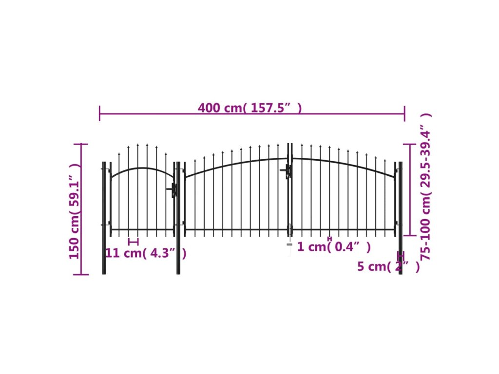 Elegantní zaoblený design naší brány je velmi atraktivní. Silné vodorovné výztuhy zpevňují její rám a zvyšují její bezpečnost. Naše brána tak tvoří nejen působivý vstup na váš pozemek, ale také spolehlivou bariéru. Je vyrobená z oceli a ošetřená práškovým lakem, který ji chrání před rzí a korozí. Zahradní brána je rovněž vybavená zámkem. Dodáváme ji spolu se třemi sloupky s pevnými závěsy pro snadnou instalaci. Součástí dodávky je též zemní otočná zarážka, která umožňuje zajistit obě křídla brány na místě pro větší bezpečnost. Tato branka je skvělou kombinací stylu, pevnosti a stability!